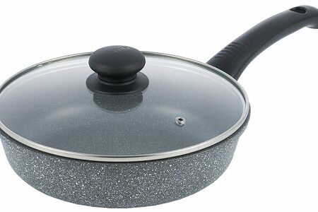 Сковорода Werner Letizia 51671. Диаметр сковороды 22 см, высота стенок 6,5 см. В комплекте стеклянная крышка. Сковорода сделана из литого алюминия с прочным антипригарным мраморным покрытием GMM DURASLATE. В комплекте стеклянная крышка. Ручки сковороды и крышки сделаны из бакелита. Толщина дна 5 мм, толщина стенок 2,5 мм. Сковороду можно использовать на газовых, стеклокерамических, электрических плитах. Допускается мытье в посудомоечной машине в режиме ECO при 50°С.Сковорода с крышкой Werner Letizia 51671 отличается надежностью и удобством при готовке. Сковорода отлично подойдет как для жарки, так и для тушения и пассеровки. Не все модели с антипригарным покрытием могут похвастать такими характеристиками, как сковорода с антипригарным покрытием GMM DURASLATE – на нем пища не будет пригорать даже на сильном огне с минимумом масла. Такая посуда зарекомендует себя как отличная сковорода для яичницы, приготовления мяса и многих других блюд.Стоит сказать и об удобной ручке – она приятна на ощупь и не нагревается при готовке. Крышка для сковороды также оснащена удобной ручкой и клапаном для выпуска пара, причем крышка на сковороду прилегает максимально плотно при приготовлении, а ее прозрачность позволяет наблюдать за процессом. Корпус выполнен из литого алюминия, что позволяет посуде сочетать легкость и прочность – далеко не все сковороды с антипригарным покрытием могут похвастать таким сочетанием качеств.Если вам нужна действительно качественная и удобная сковорода с крышкой, то ваш выбор - Werner Letizia 51671! Также рекомендуем вашему вниманию другие кастрюли и сковороды коллекции Letizia.*Сковорода не подходит для индукции.
