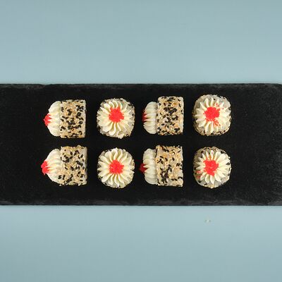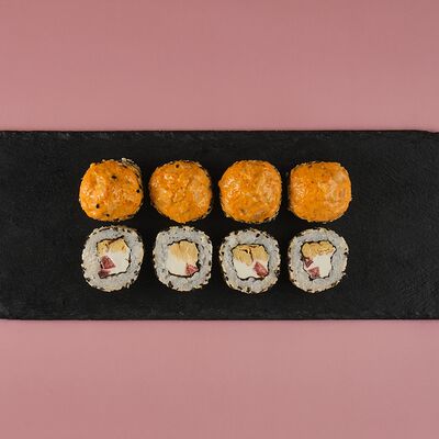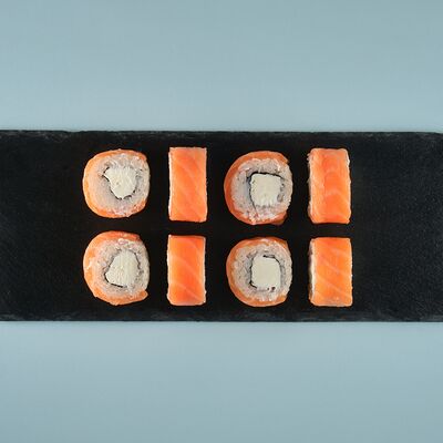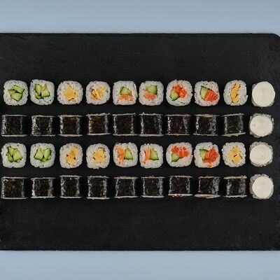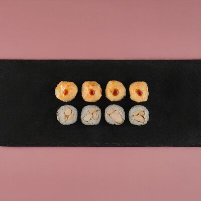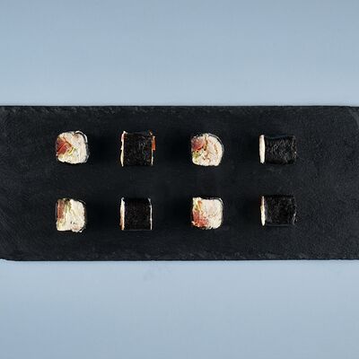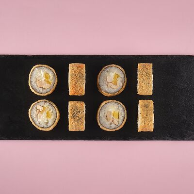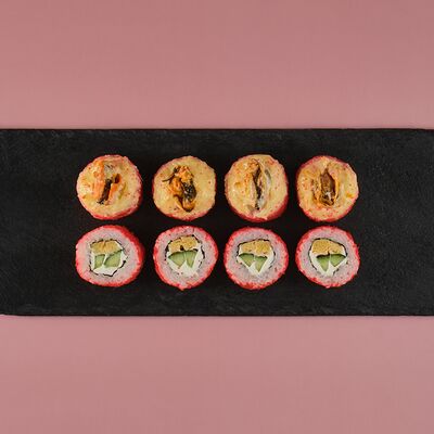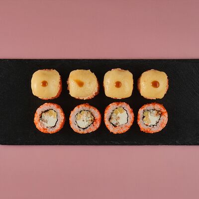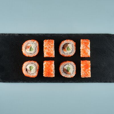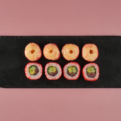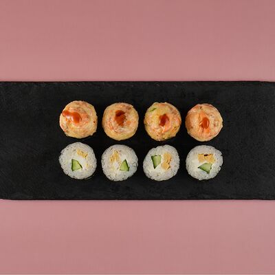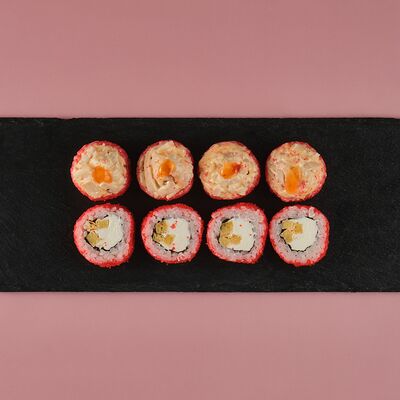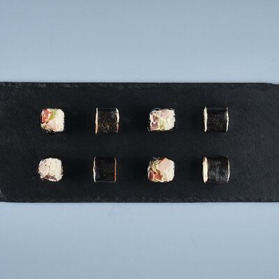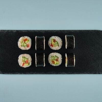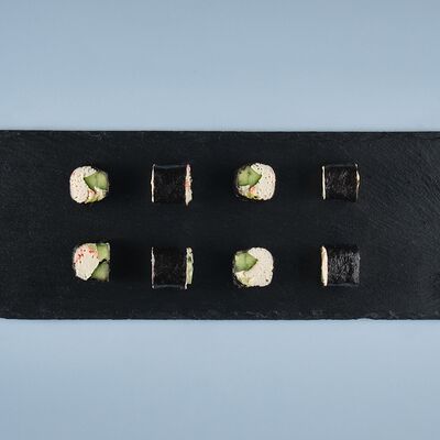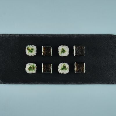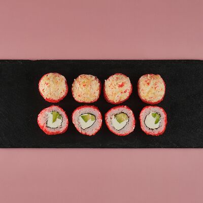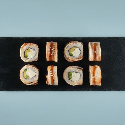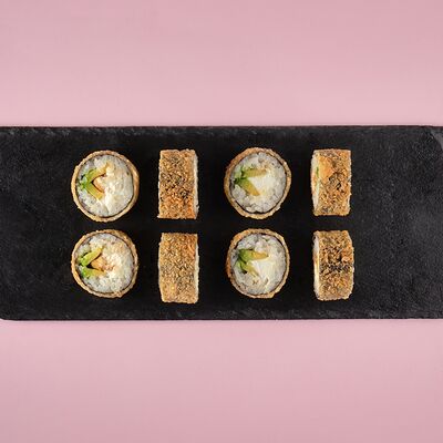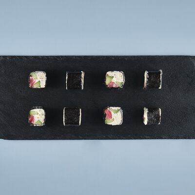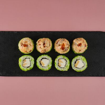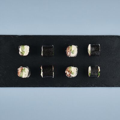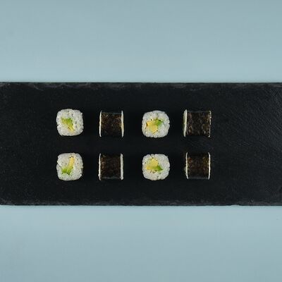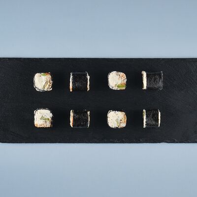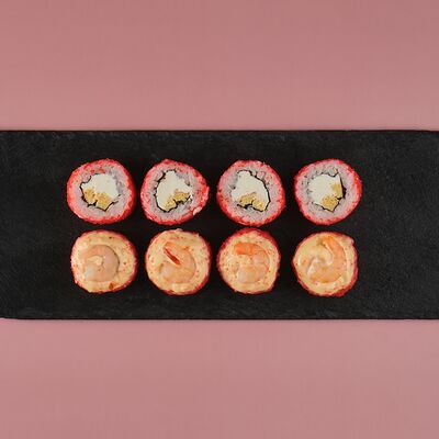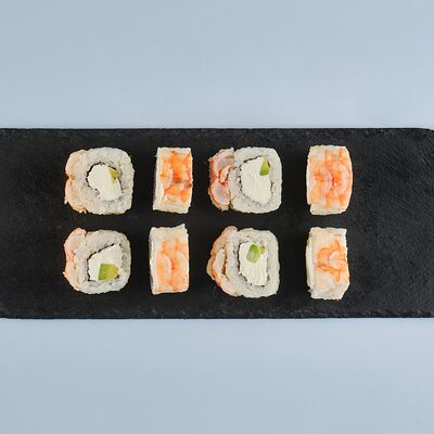 Водоросли нори, сыр сливочный, креветка, авокадо