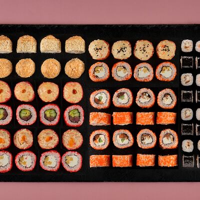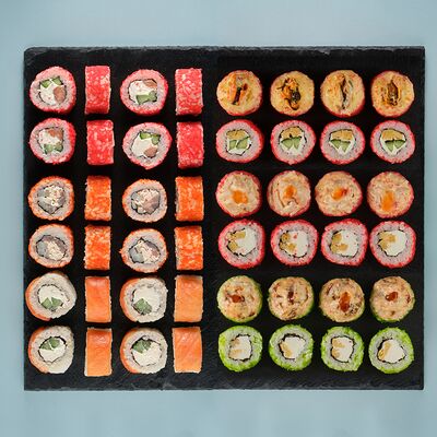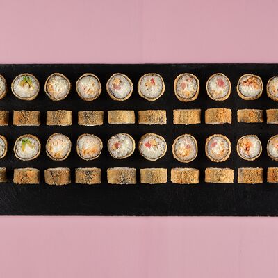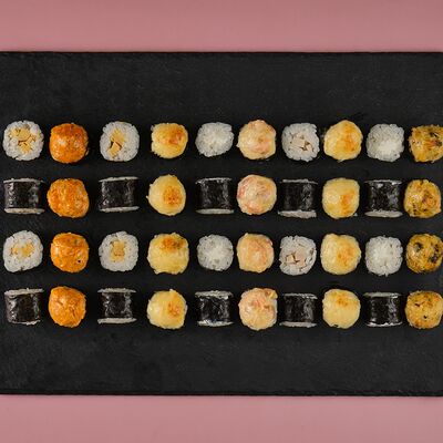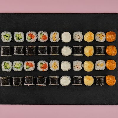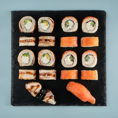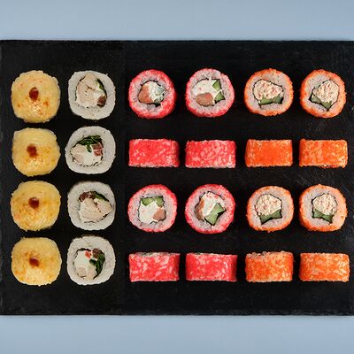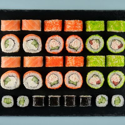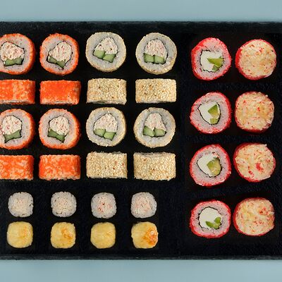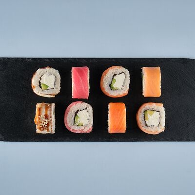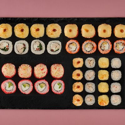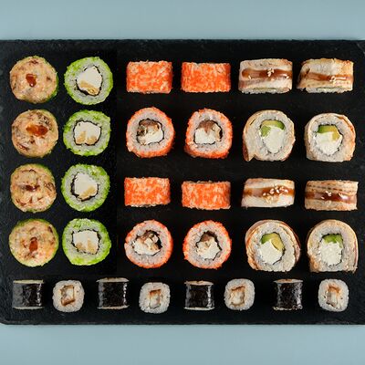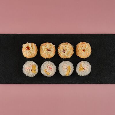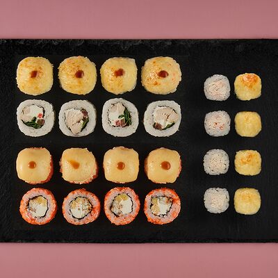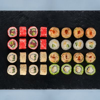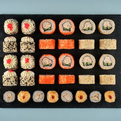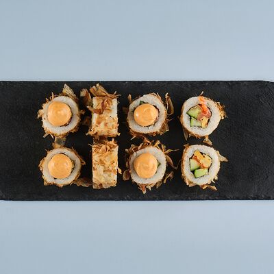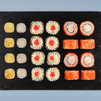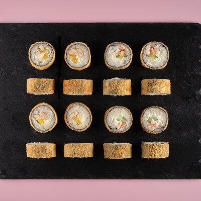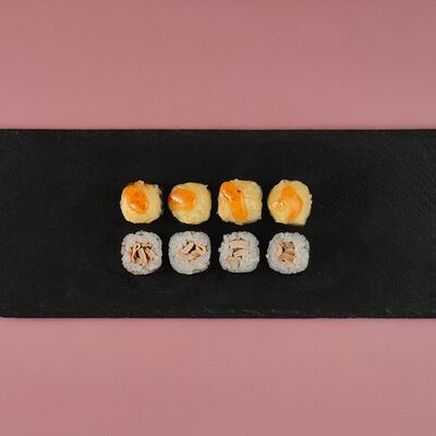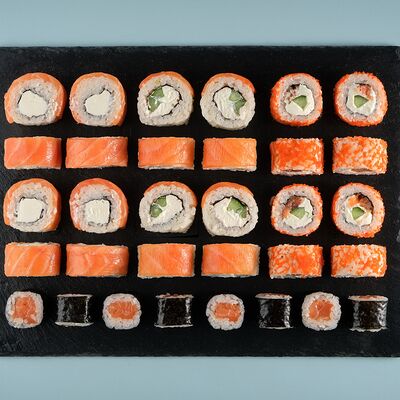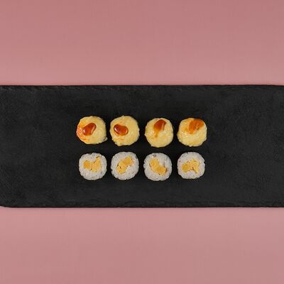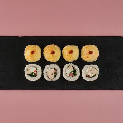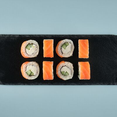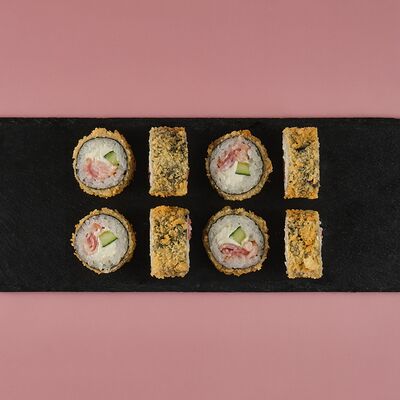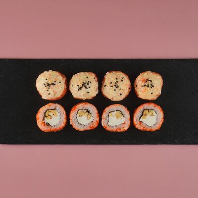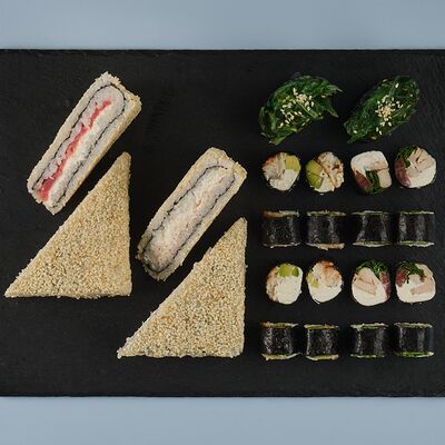 Водоросли нори, сыр сливочный, креветка, авокадо