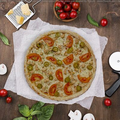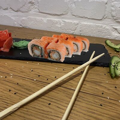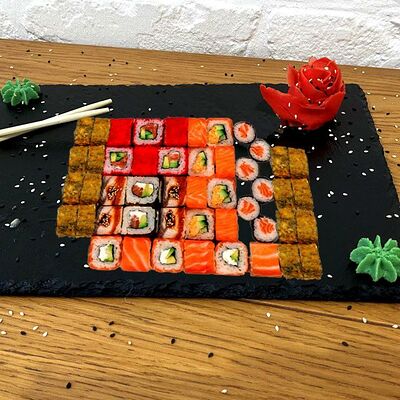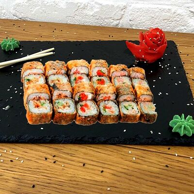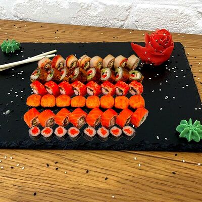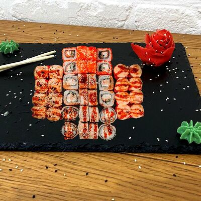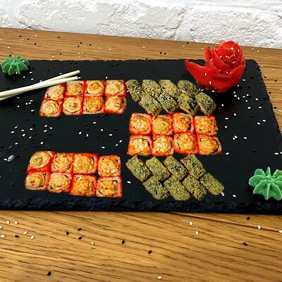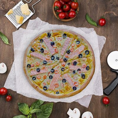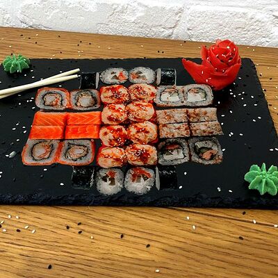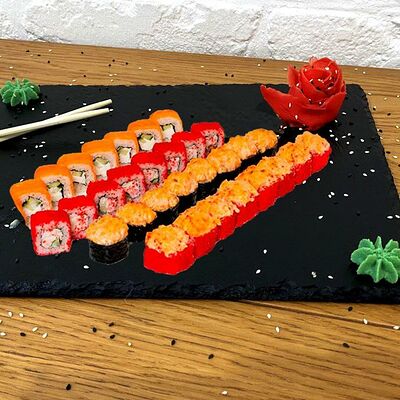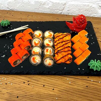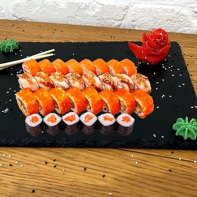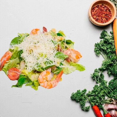 Креветки, лосось, морской коктейль, сыр, маслины, соус пармезан