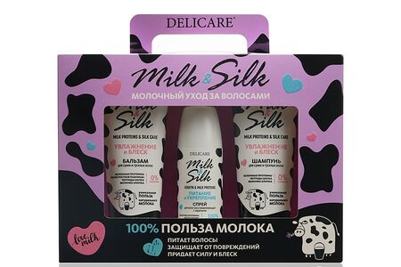Женский набор Delicare Milk & Silk (шампунь для волос увлажнение 250мл + бальзам для волос увлажнение 250мл + спрей для волос кератиновый 200мл) доставка