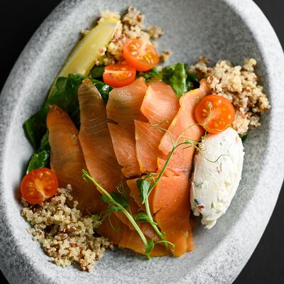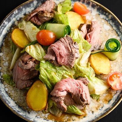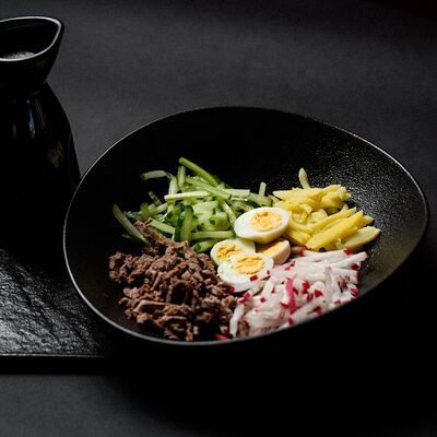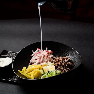 Вырезка говяжья, редис, отварной картофель, свежий огурец, яйцо, кефир