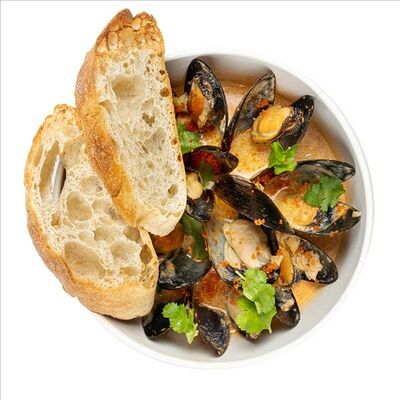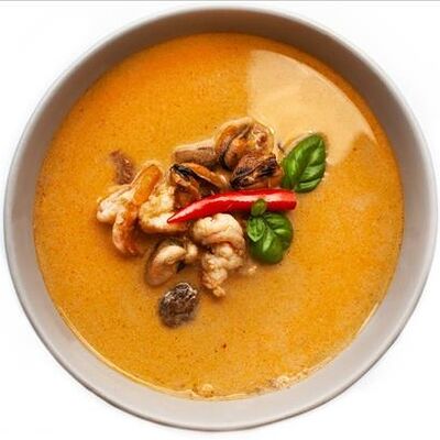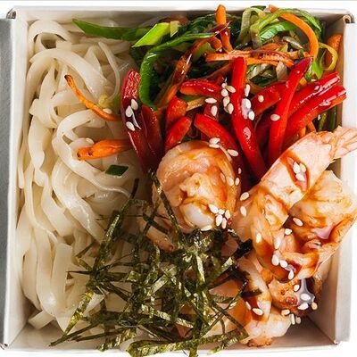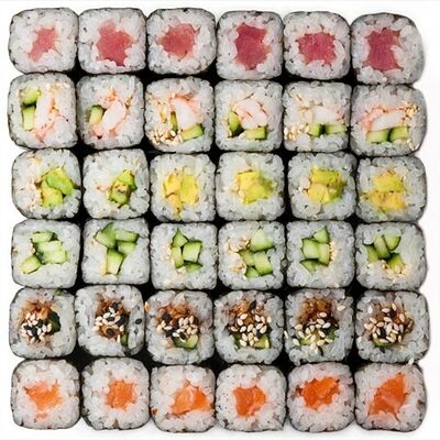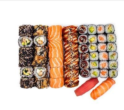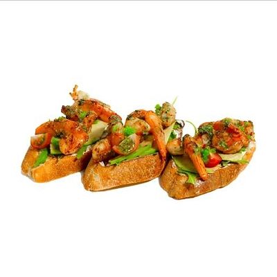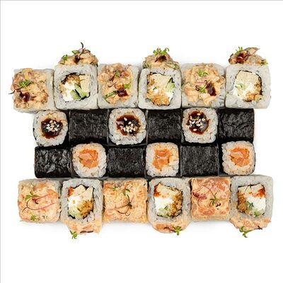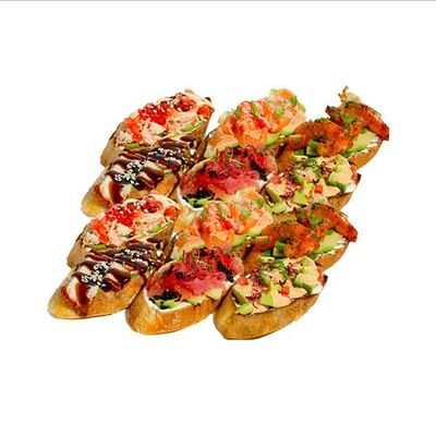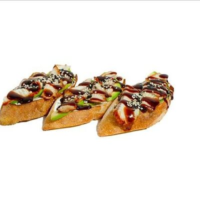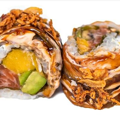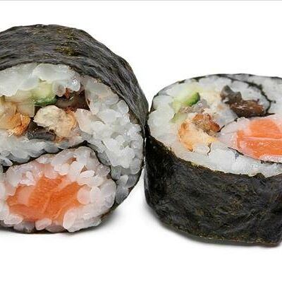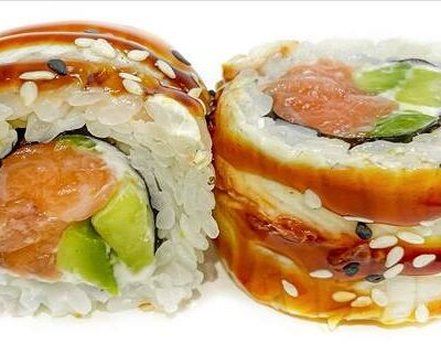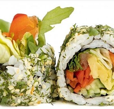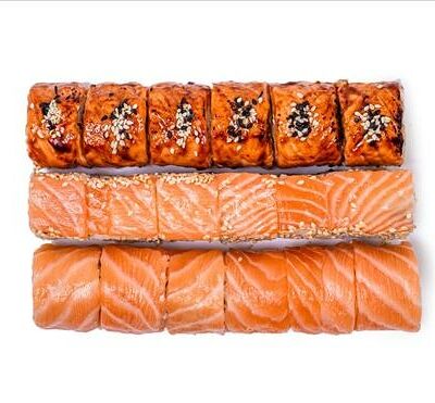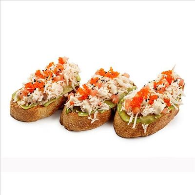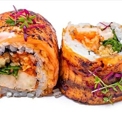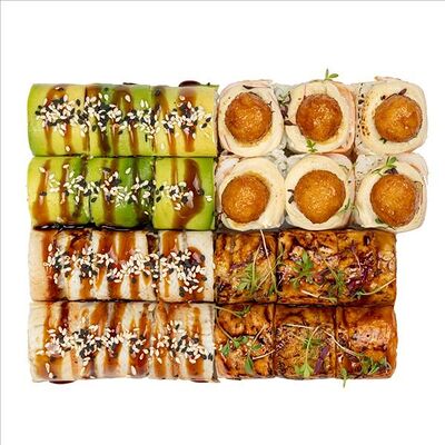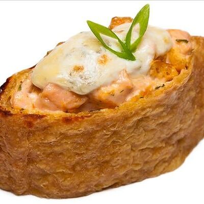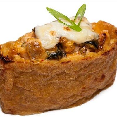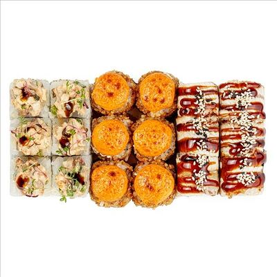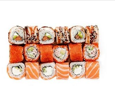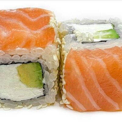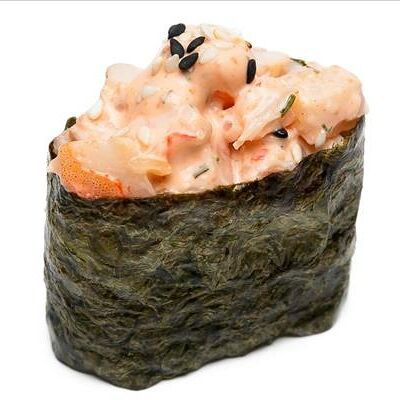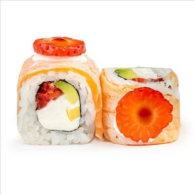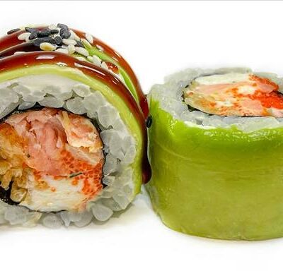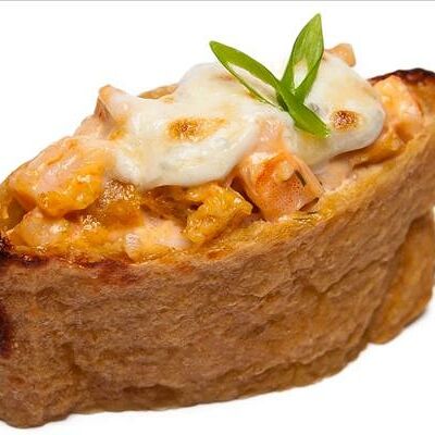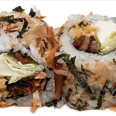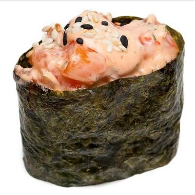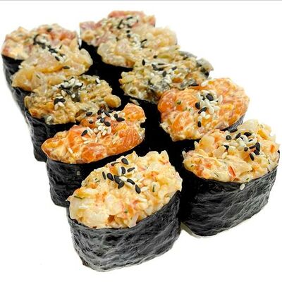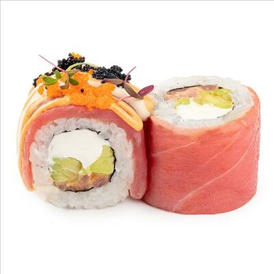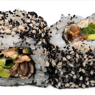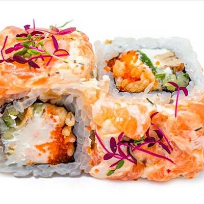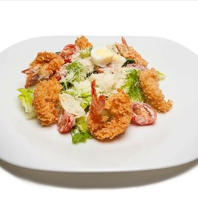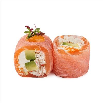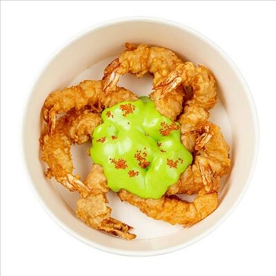 Ролл с креветкой, рисом, сливочным сыром, омлетом томаго, икрой масаго и свежим огурцом в сухарях панко (6 шт.)