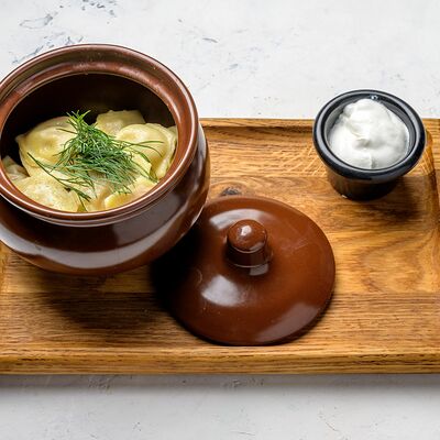 Классические пельмени с мясом говядины и свинины. Подаются с домашней сметаной