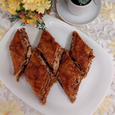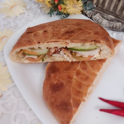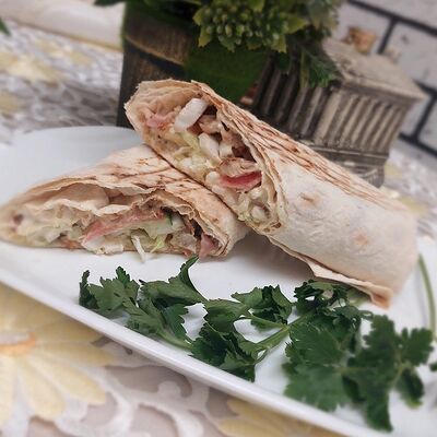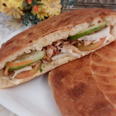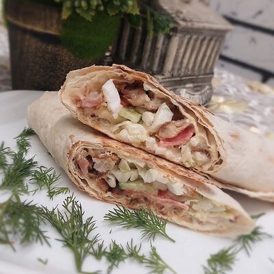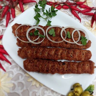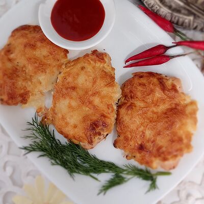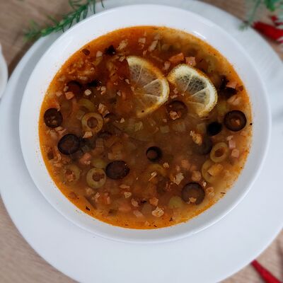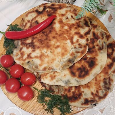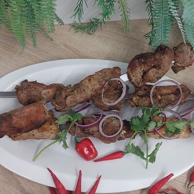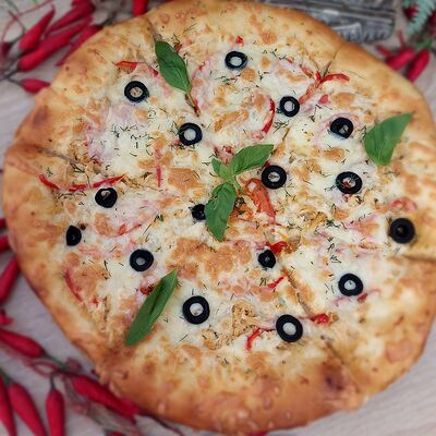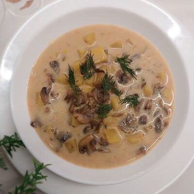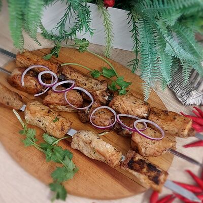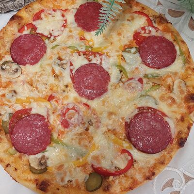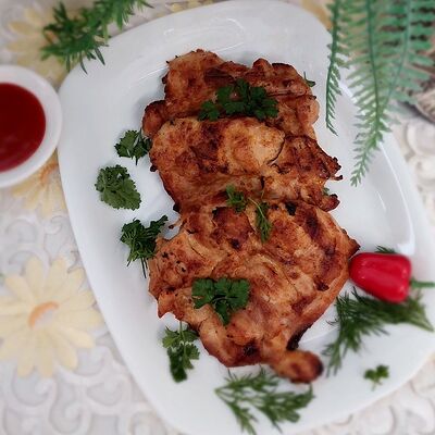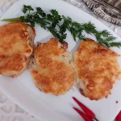 Cвинoй карбонад, моцарелла, шампиньоны, лук, майонез