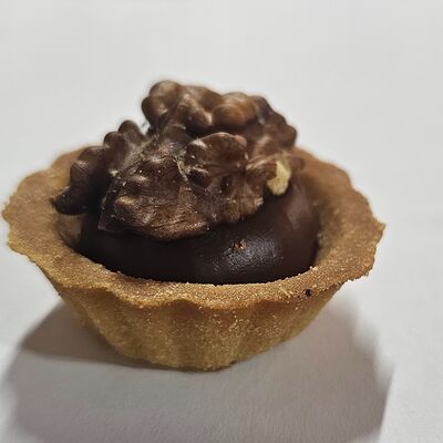 Тарталетка, вареная сгущенка, грецкий орех