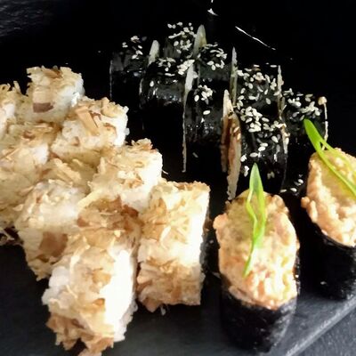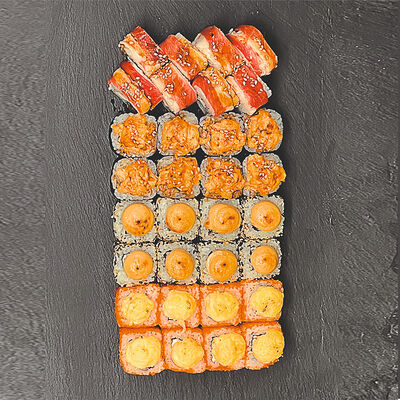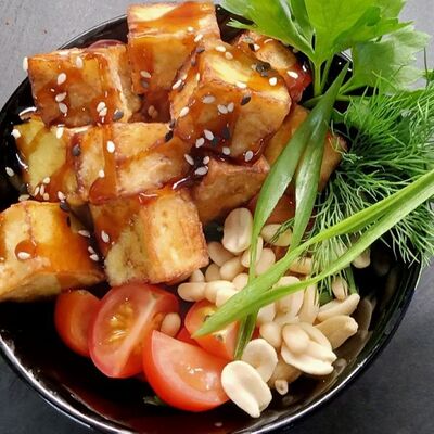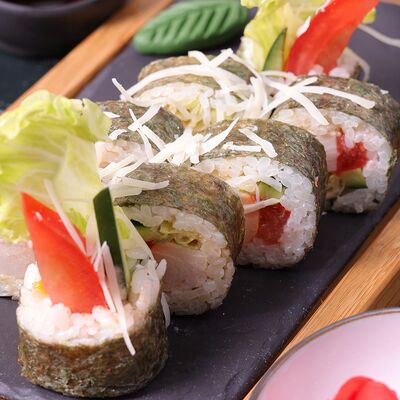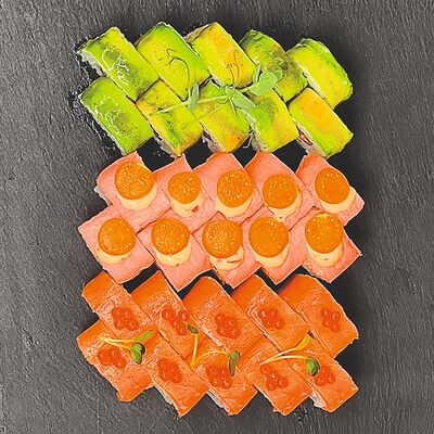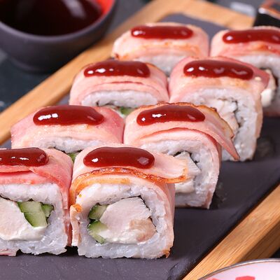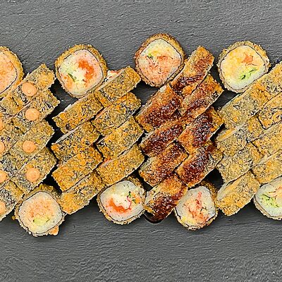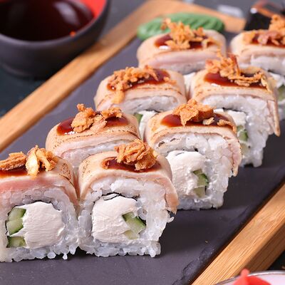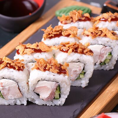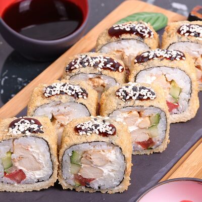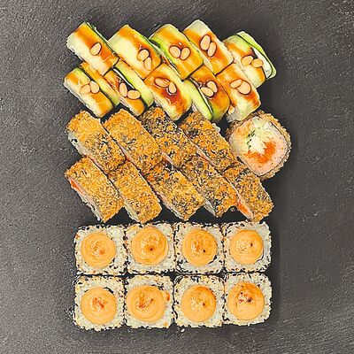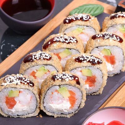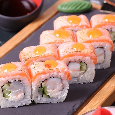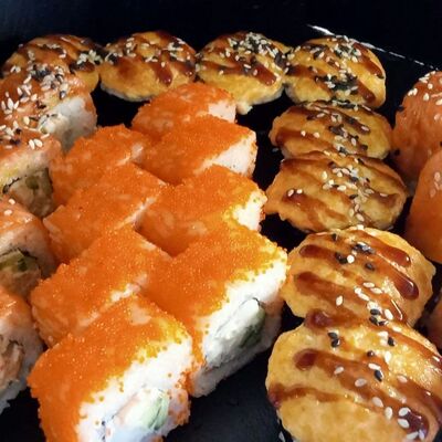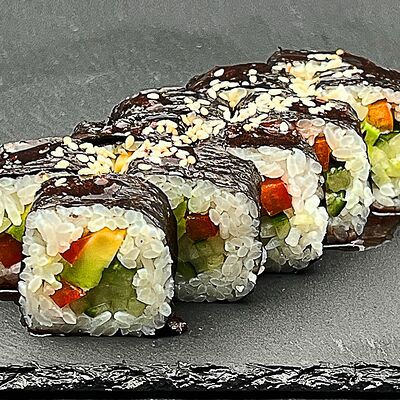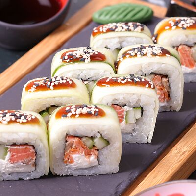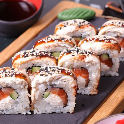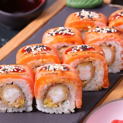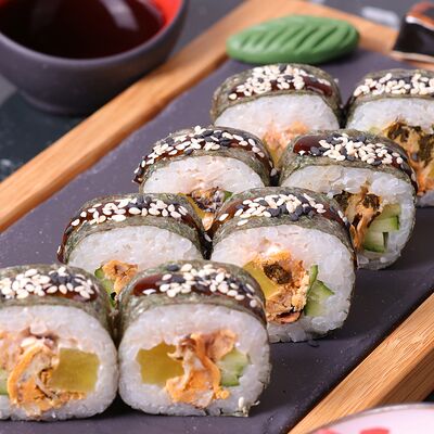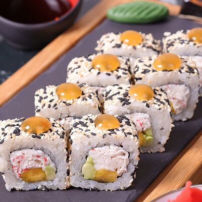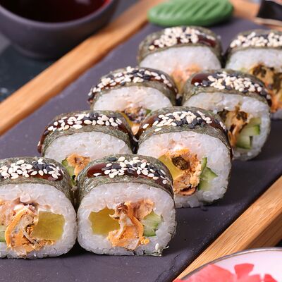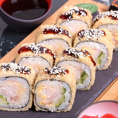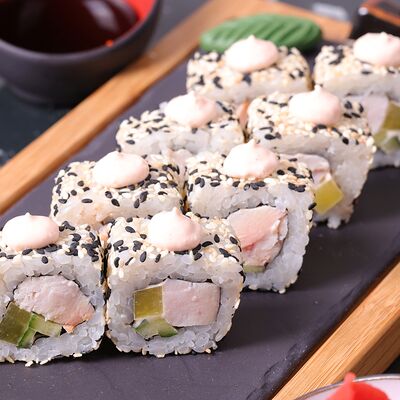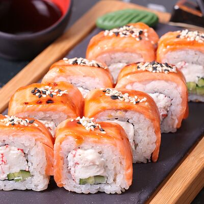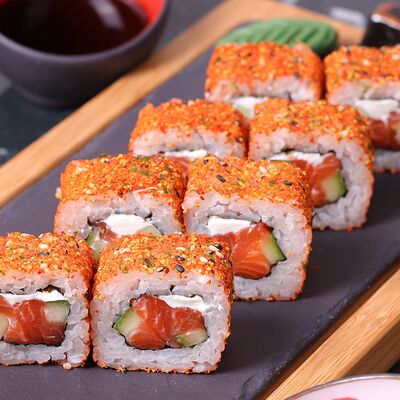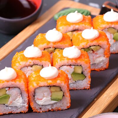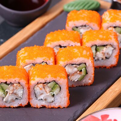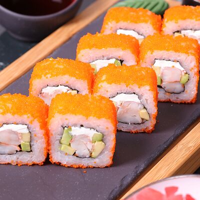 Креветка тигровая, манго, спайси, огурец, авокадо, микрозелень, помидорчики черри