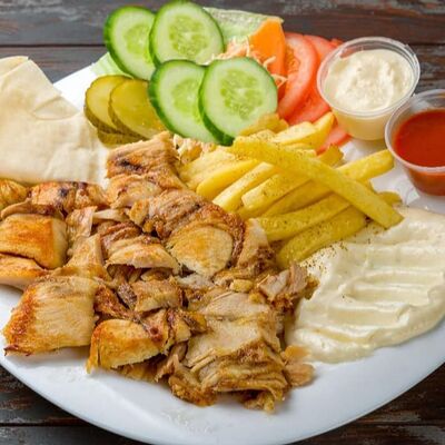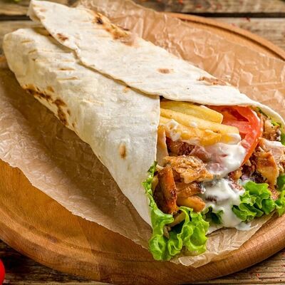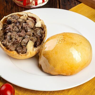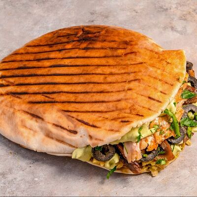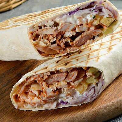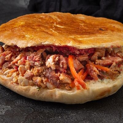 Курица, маслины, кукуруза, запечённые шампиньоны и фирменный секретный соус