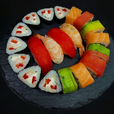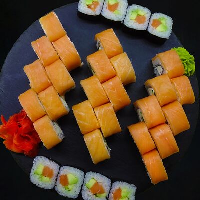Рис, копченый лосось, сыр, огурец (8 шт.)