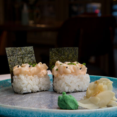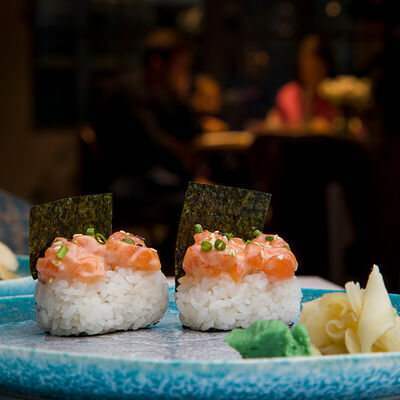 Рис, филе лосося, имбирь, васаби (2 шт.)