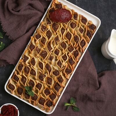 Говядина, свинина, куриная вырезка, булгур, лук, масло, отжатый йогурт, специи
