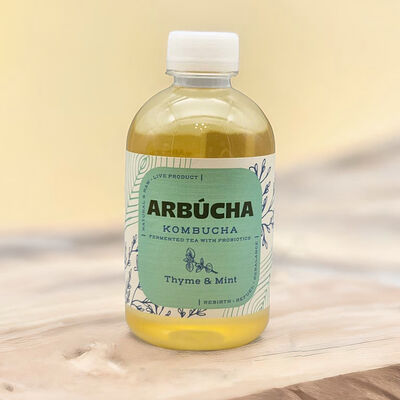 Исключительно натуральный, безалкогольный ферментированный чай на основе чайного гриба, чабреца, мяты, высококачественного черного и зеленого чая. Богат пробиотиками, антиоксидантами и полезными органическими кислотами. Состав: чистая питьевая вода, сахар, в основном усваиваемый в процессе брожения, чайный гриб, черный чай, зеленый чай, сушеный тимьян и мята, стеклянная бутылка