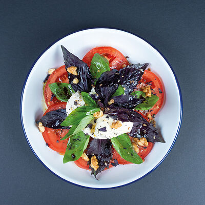 Кабачки, помидоры, болгарский перец, лук, брокколи, шпинат, руккола, грецкие орехи, бальзамик, чеснок, кориандр