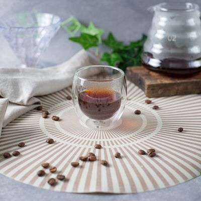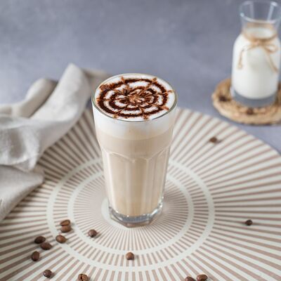 Кофе раф, приготовленный из двух порций эспрессо, сливок (10% жирности), с добавлением ванильного сиропа, который можно заменить другим (выбирать нужно в опциях)