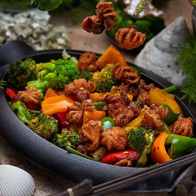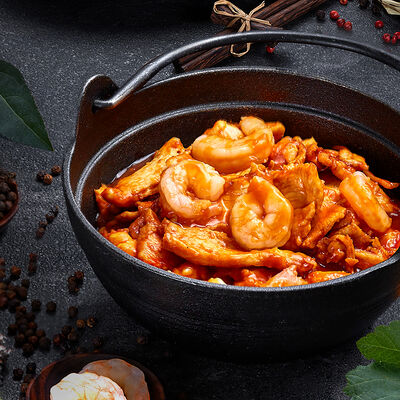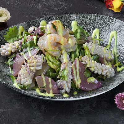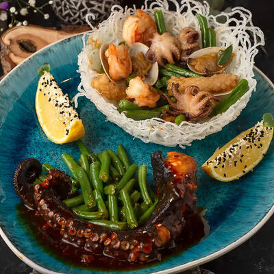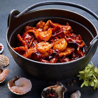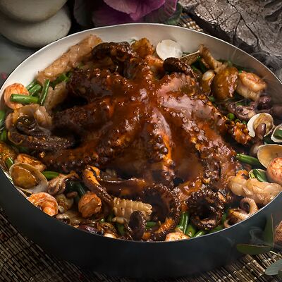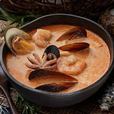Морской коктейль: мидии, креветки, осьминоги, кокосовое молоко