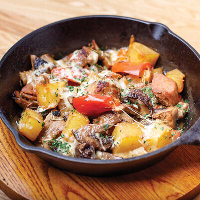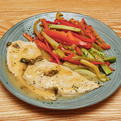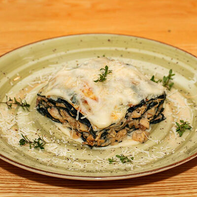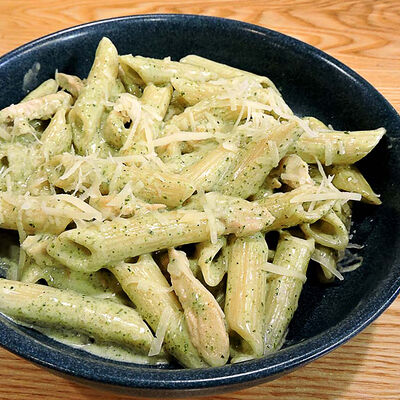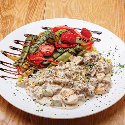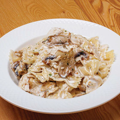 Фарфалле, куриная грудка, грибы, сливки