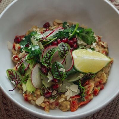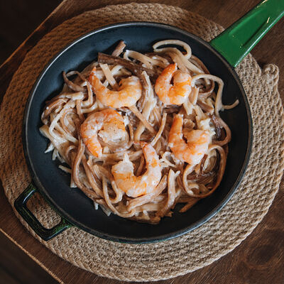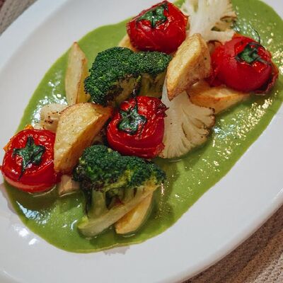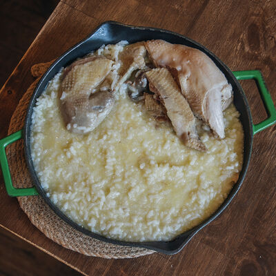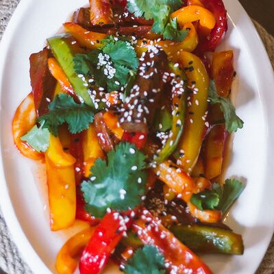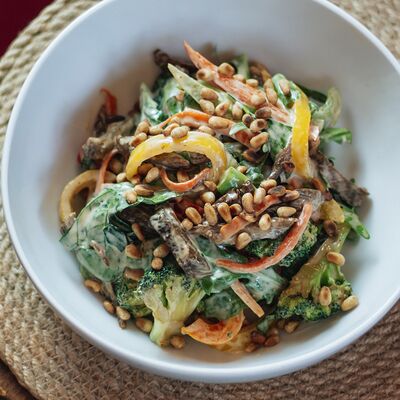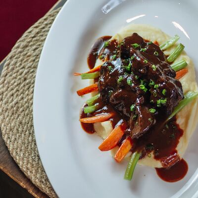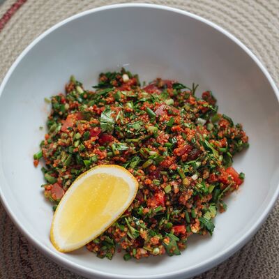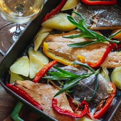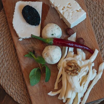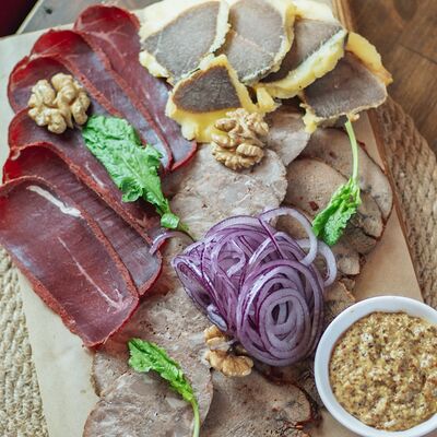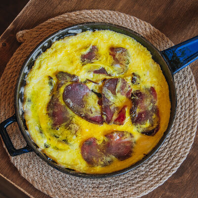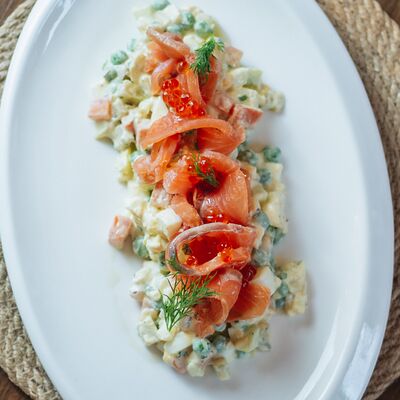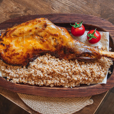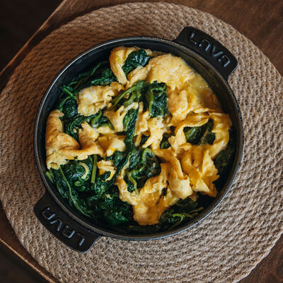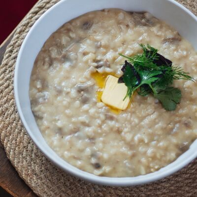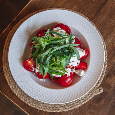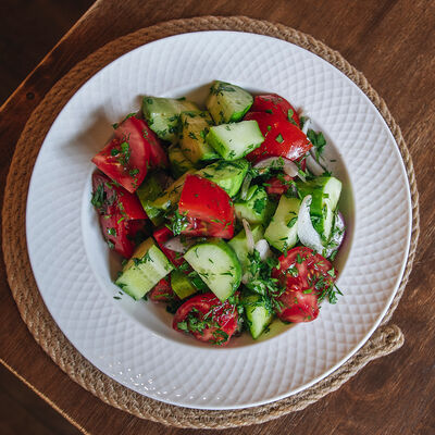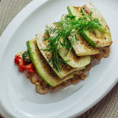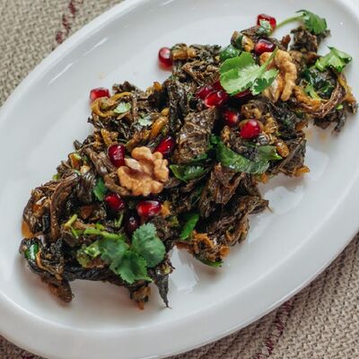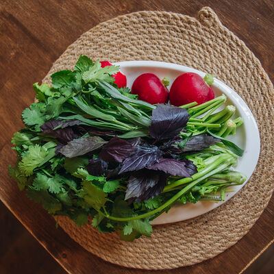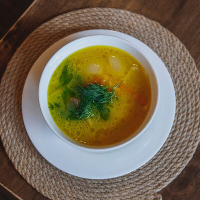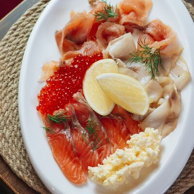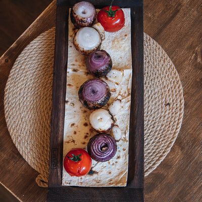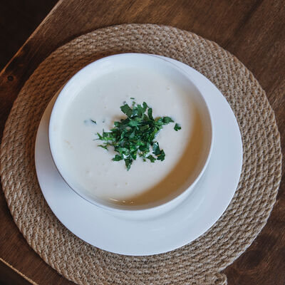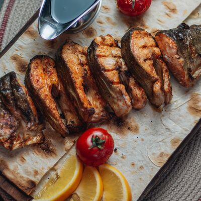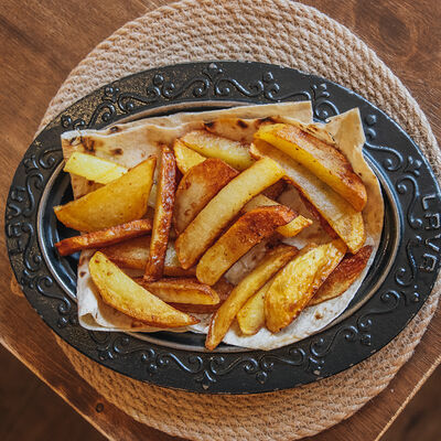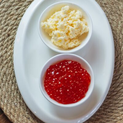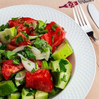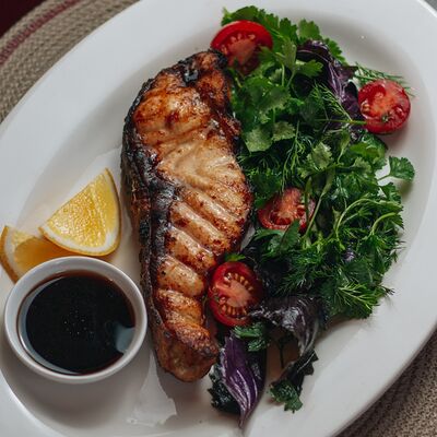 Тесто, фарш с говядиной, черный перец, чеснок, зелень, сметана, сливочное масло (в одной порции-3 шт.)