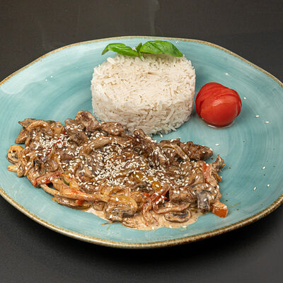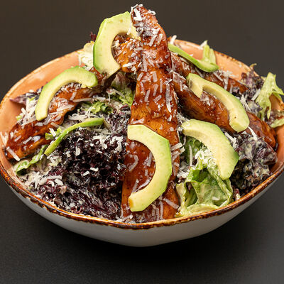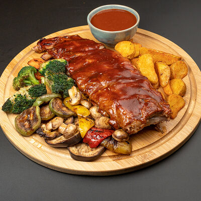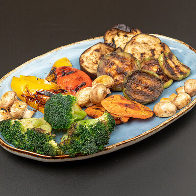 Брокколи, кабачки, грибы, баклажаны, помидоры черри, перец, Соус барбекю