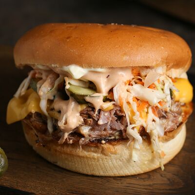 Говядина, соленые огурцы, чеддер, соус Кауфман