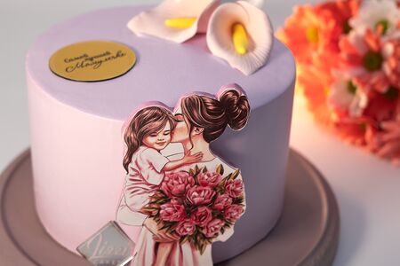 Շոկոլադե փափուկ բիսկվիտ (3 շերտ), եփած խտացրած կաթով կարագային կրեմ՝ ինչպես Պրագա տորթում: Պատված է սերուցքային կրեմով, մարցիպանե մայր և աղջիկ դեկորով։ Գրվածքը՝ Ամենալավ մայրիկին