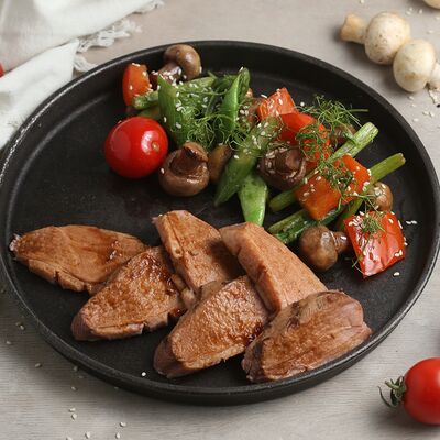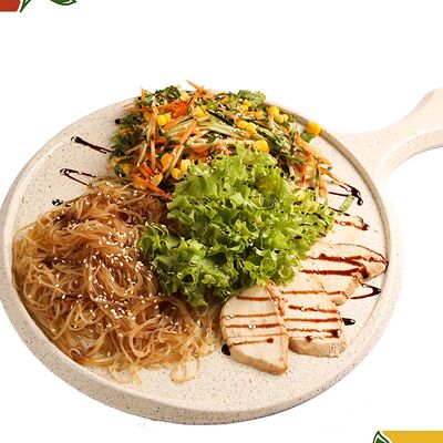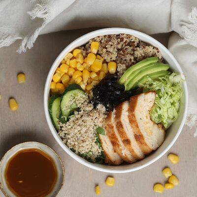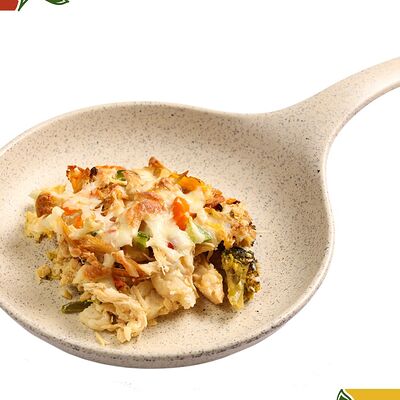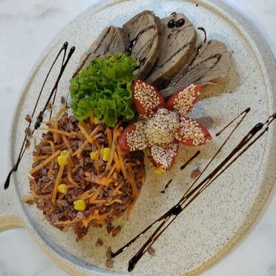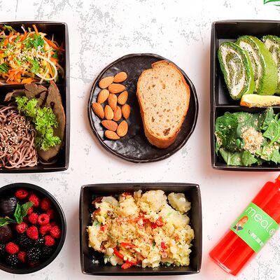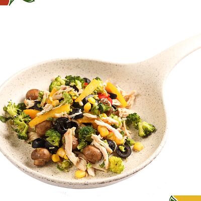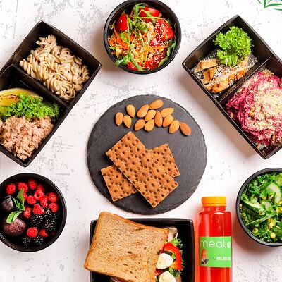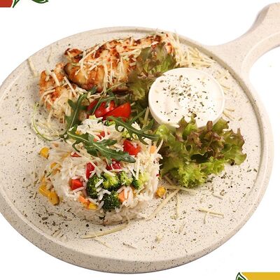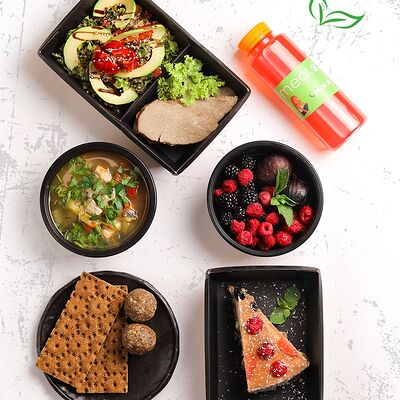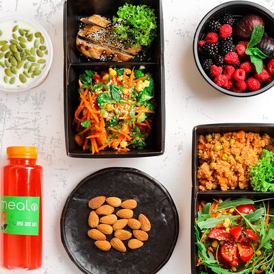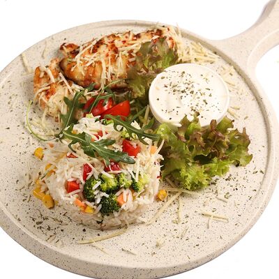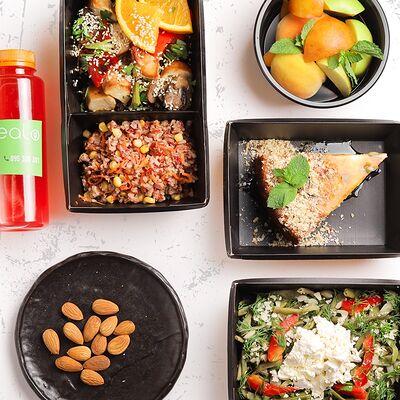 Կաթնաշոռային թխուկ, միրգ, նուշ, հավ չինական ձևով, բրինձ վայրի, հյութ, կանաչ լոբով աղցան, կաթնաշոռ (1500 կկալ)