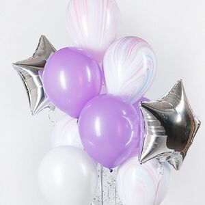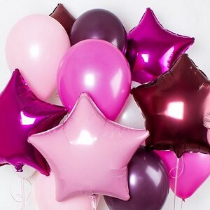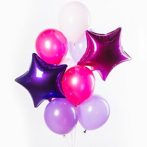 Հելիում գազով փուչիկներ, սրտաձև (3 հատ), աստղ (3 հատ), կլոր (9 հատ), ընդհանուր (15 հատ)