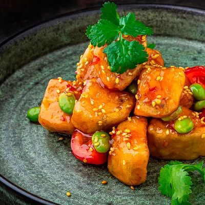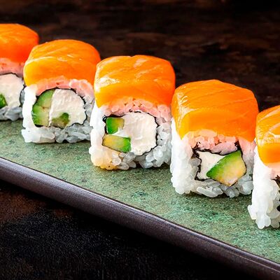 Рис, киноа, лосось, авокадо, кокосовый соус, фрисе, руккола, шпинат, лоло-росса, редис, помидоры черри, морковь чука, фасоль эдамаме, имбирно-лаймовый соус, кунжут, нори