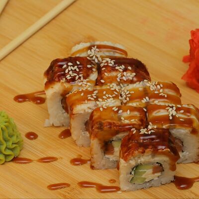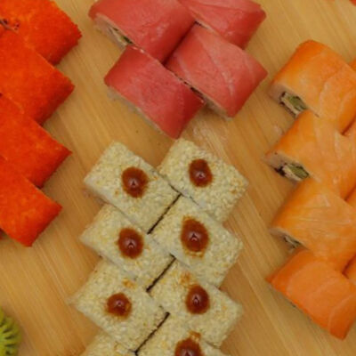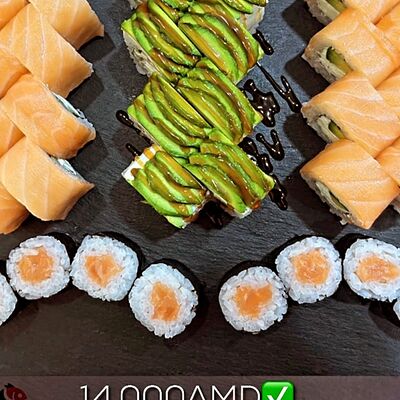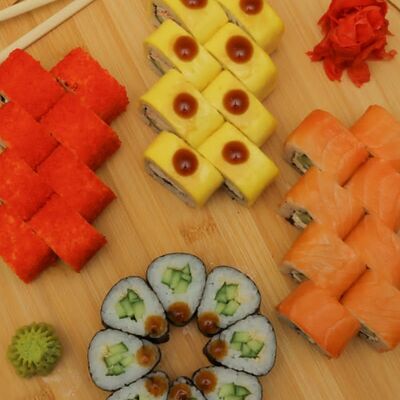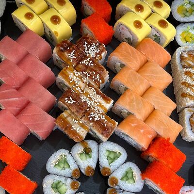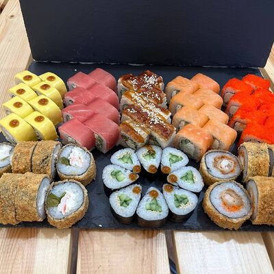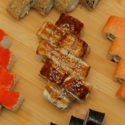 Филадельфия, Калифорния с Раками, Канада, чиз-ролл, ролл с тунцом, Каппа-маки, темпура с креветками, темпура с Раками