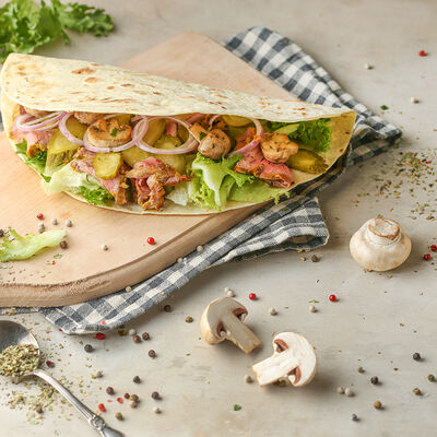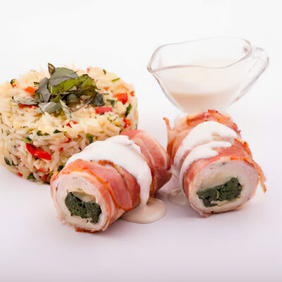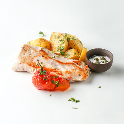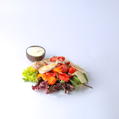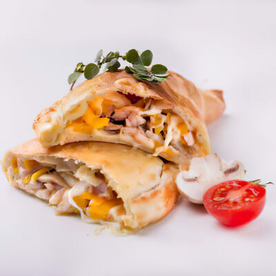 Томатный соус, моцарелла, куриная грудка, перец и оливки