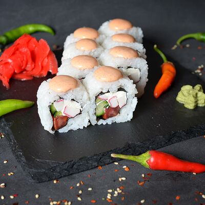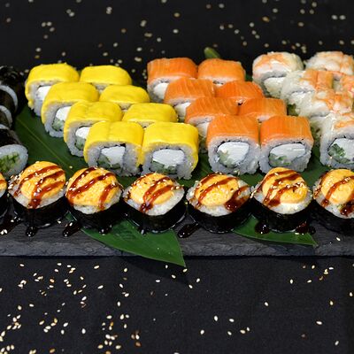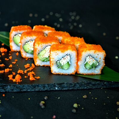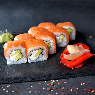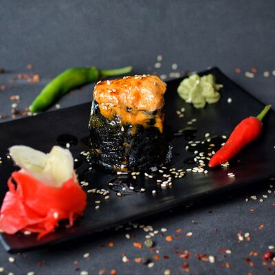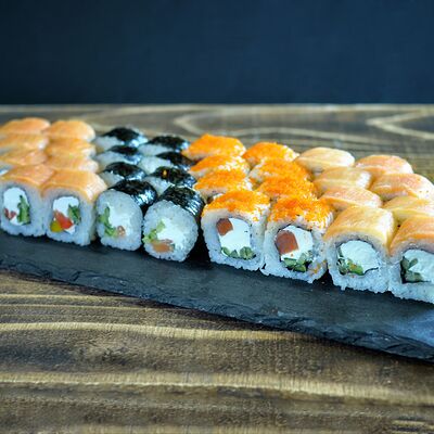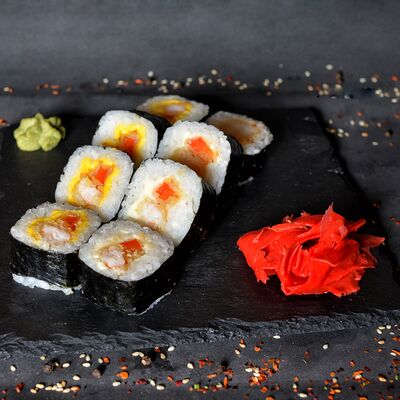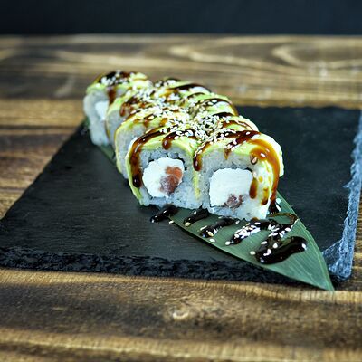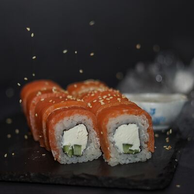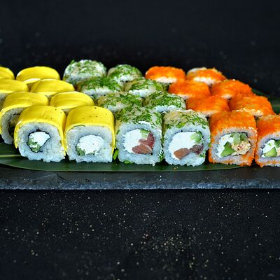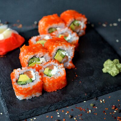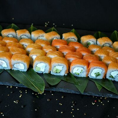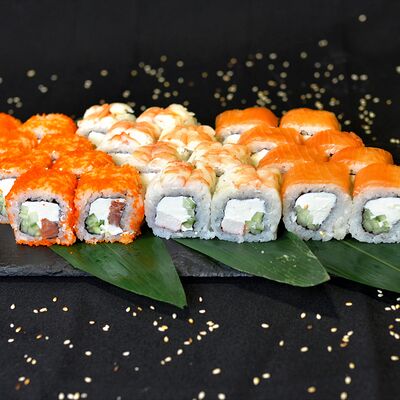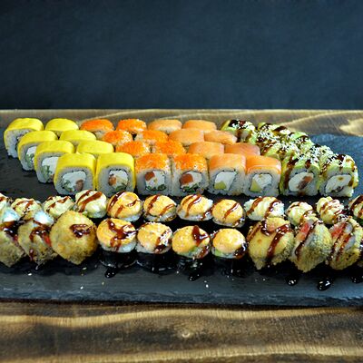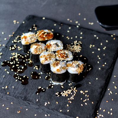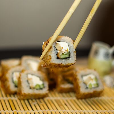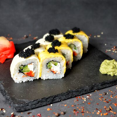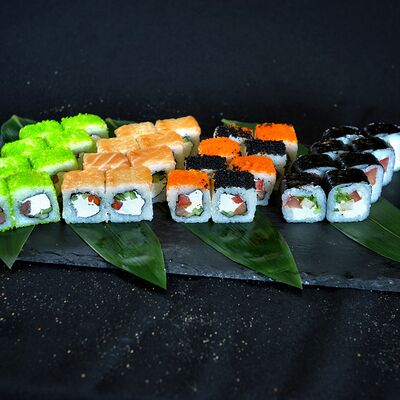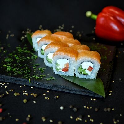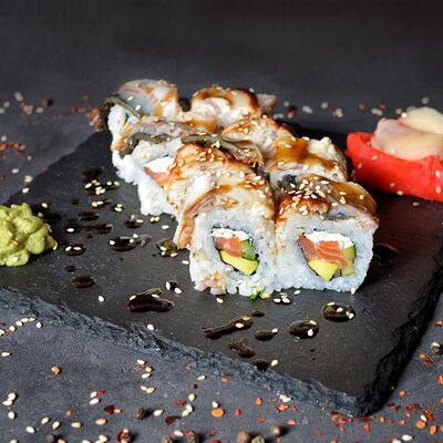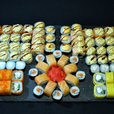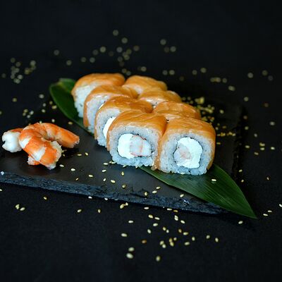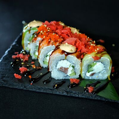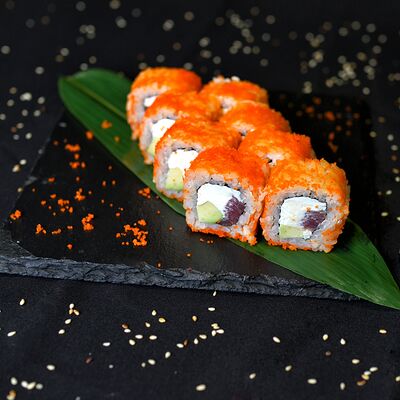 Запеченный ролл Филадельфия, запеченный ролл Калифорния, запеченный ролл спайси сумоку, чиз темпура, Кани темпура, Сяке темпура, Чикен чиз темпура