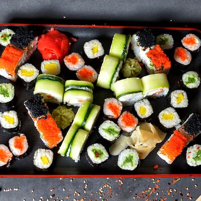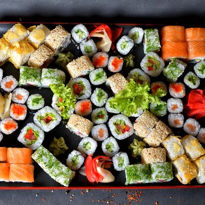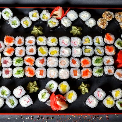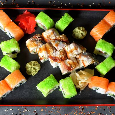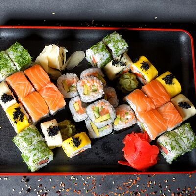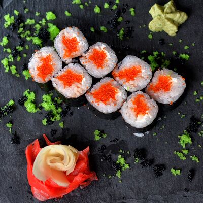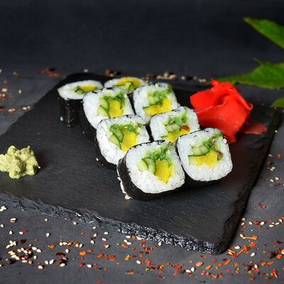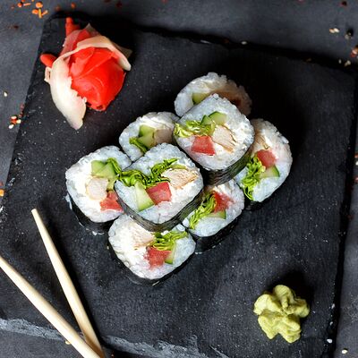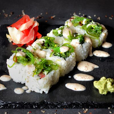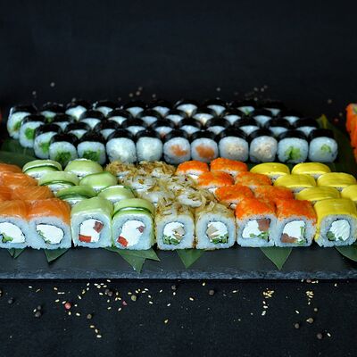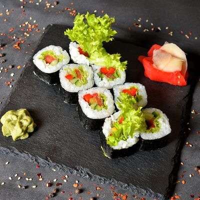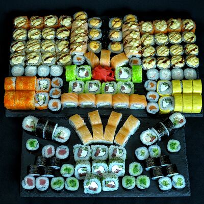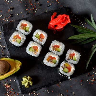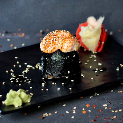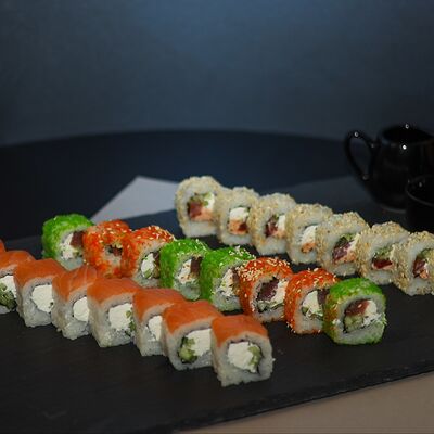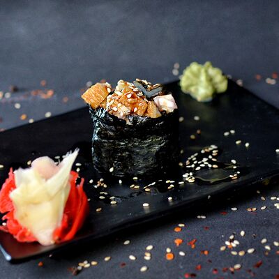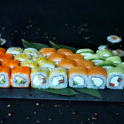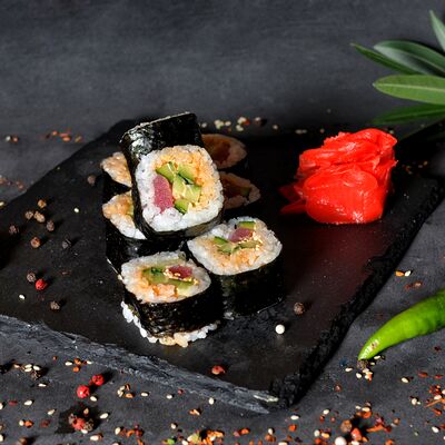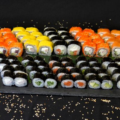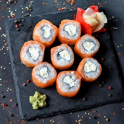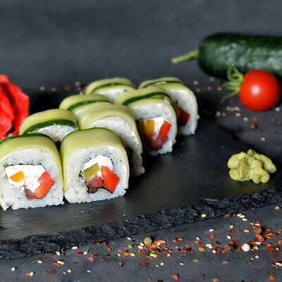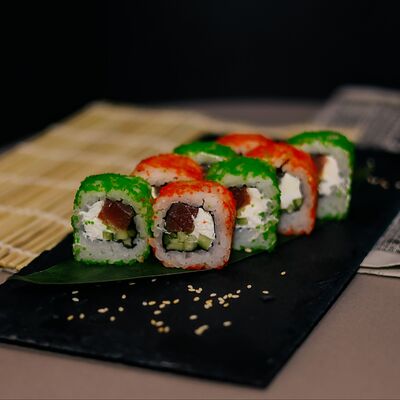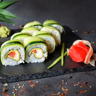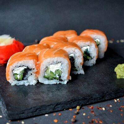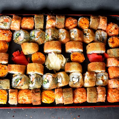 Запеченный ролл Филадельфия, запеченный ролл Калифорния, запеченный ролл спайси сумоку, чиз темпура, Кани темпура, Сяке темпура, Чикен чиз темпура