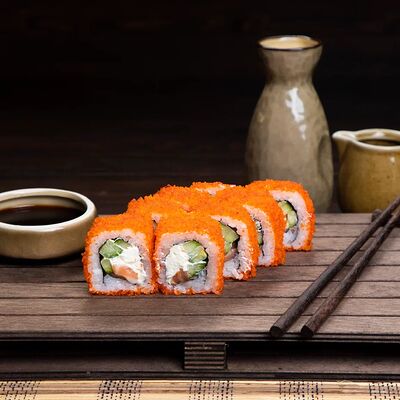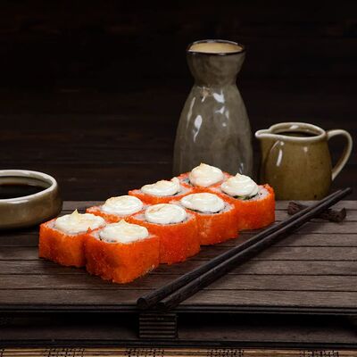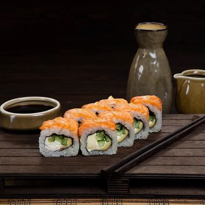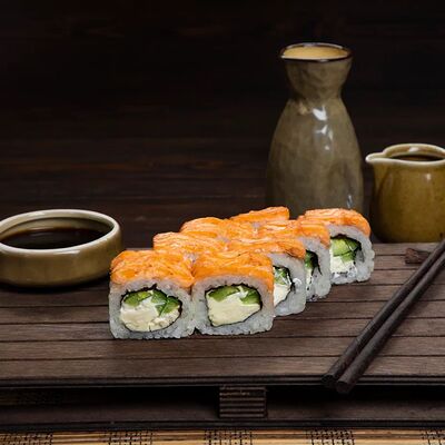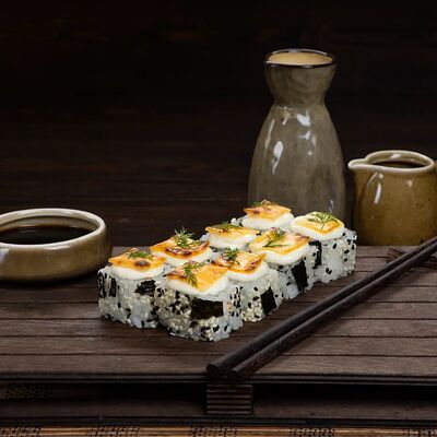 Рис, нори, сыр, лосось, огурец, спаржа, кунжут (8 штук)