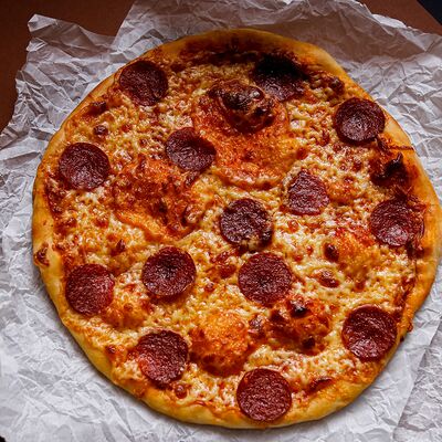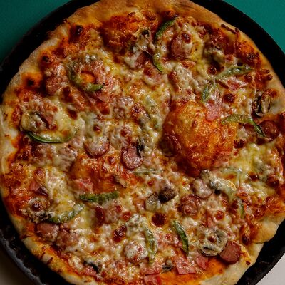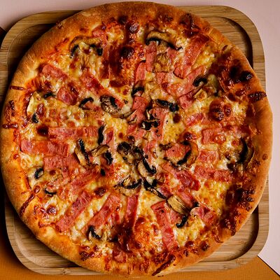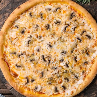 Тесто, фирменный соус, куриная грудка, грибы, 3 вида сыра (30 см)