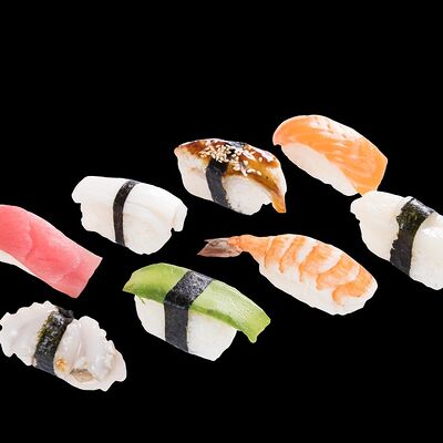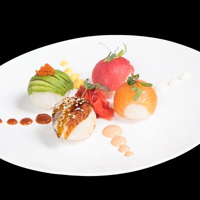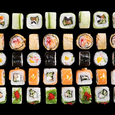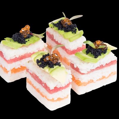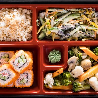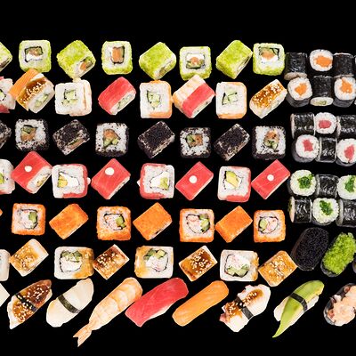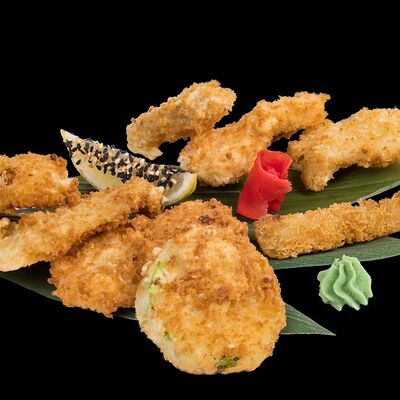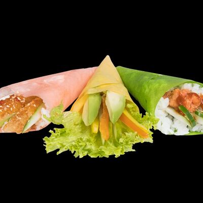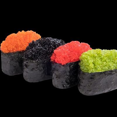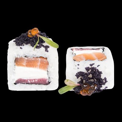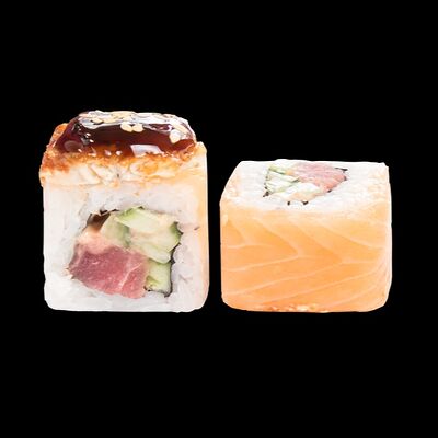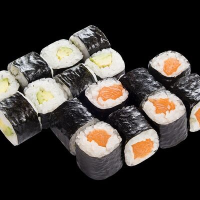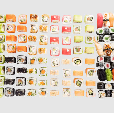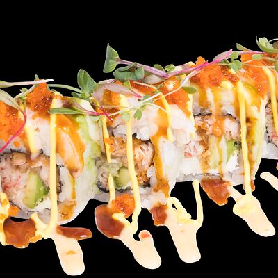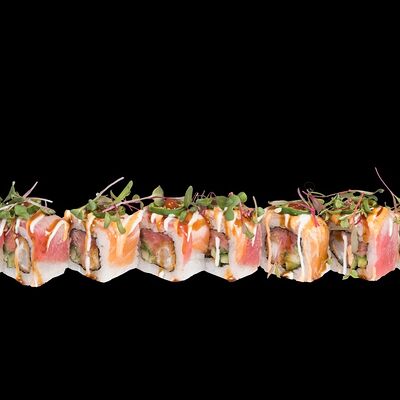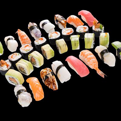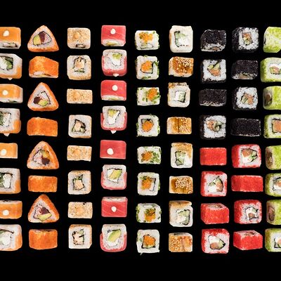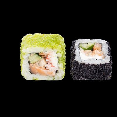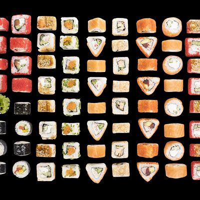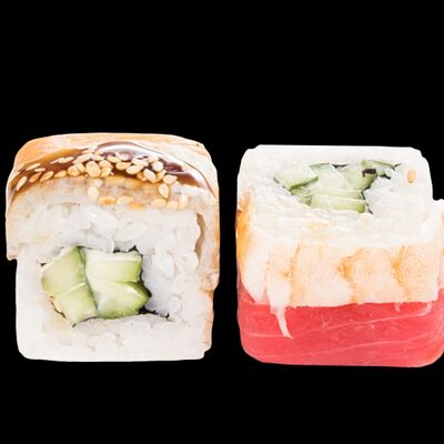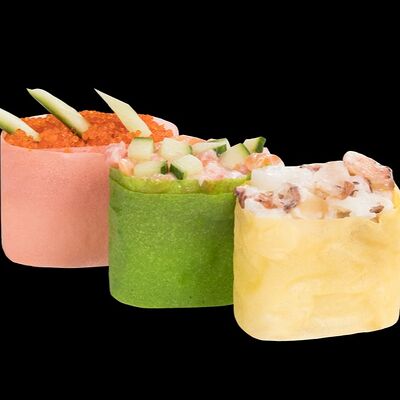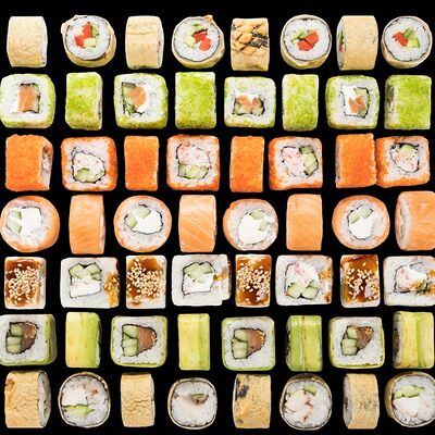 Роллы: Красный дракон, Зеленый дракон, Канада, тобико васаби, тобико Куро, Калифорния, Хотатегай, Сезам, Магуро (117 штук)