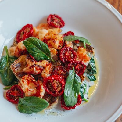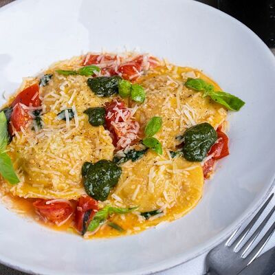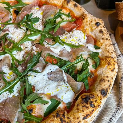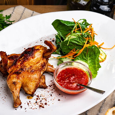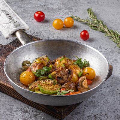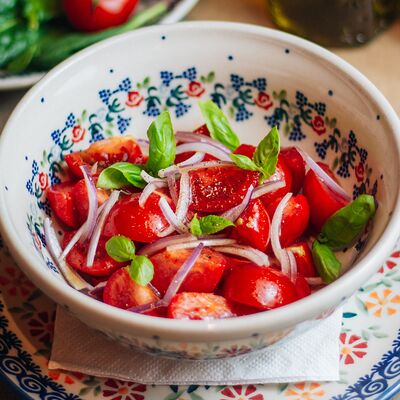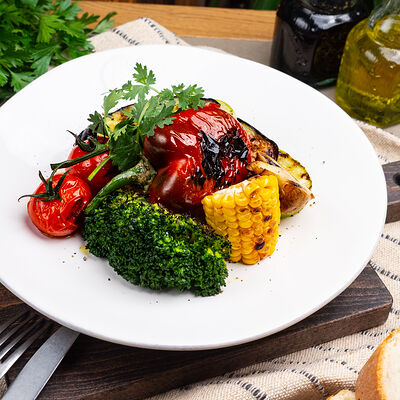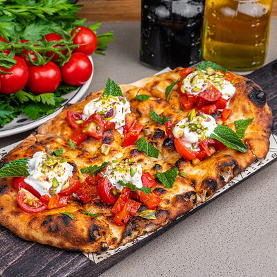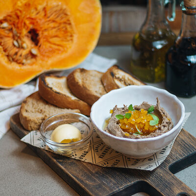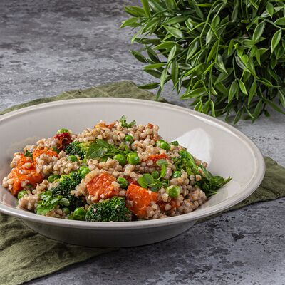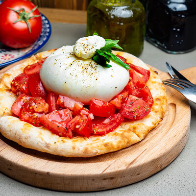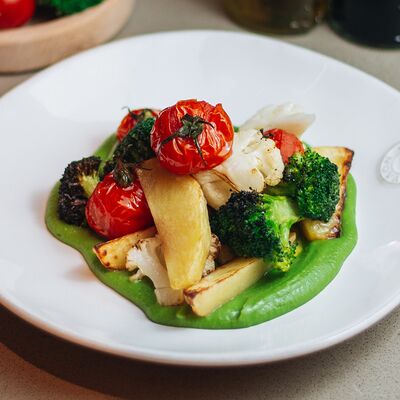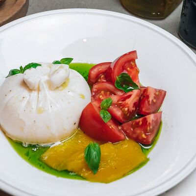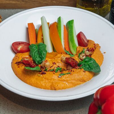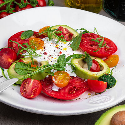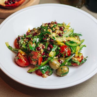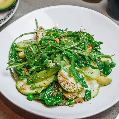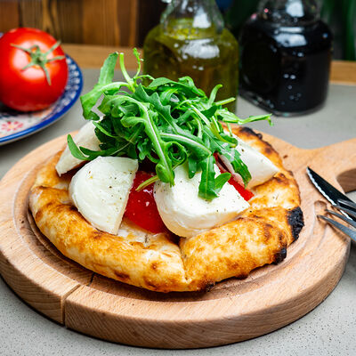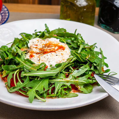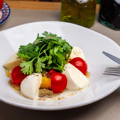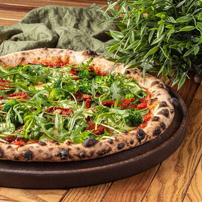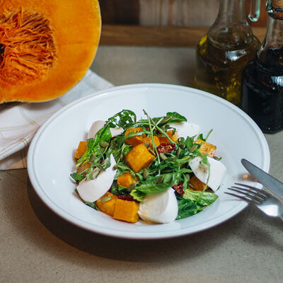 Тыква, руккола, шпинат, моцарелла, сушеные помидоры