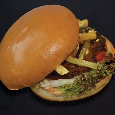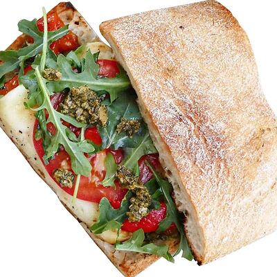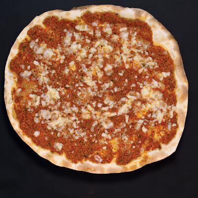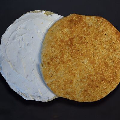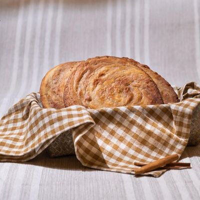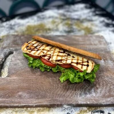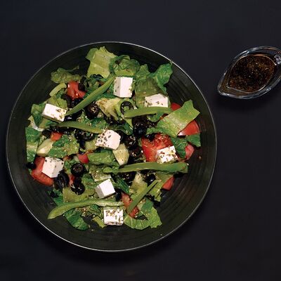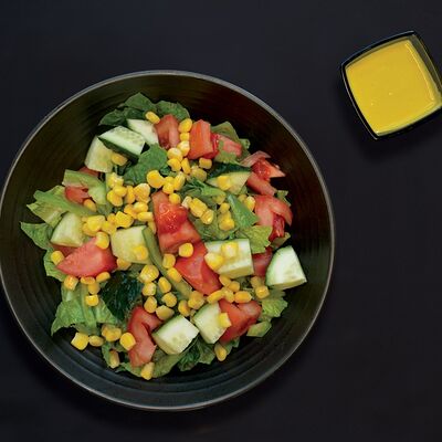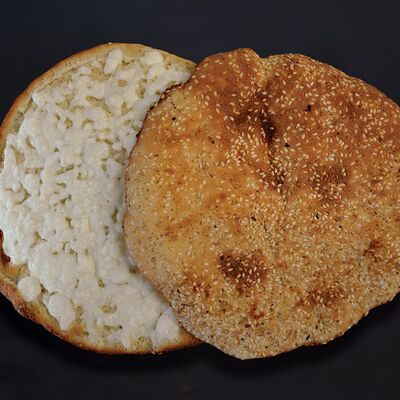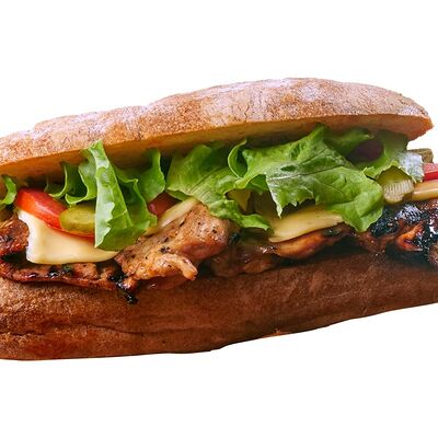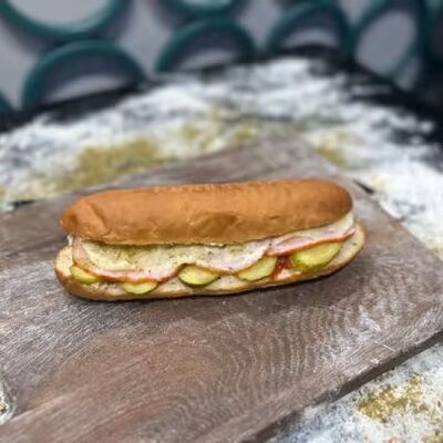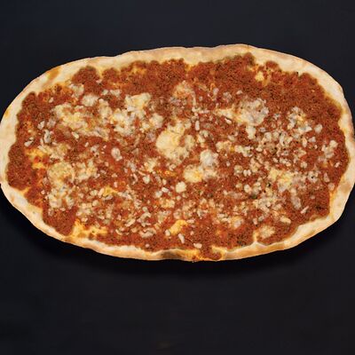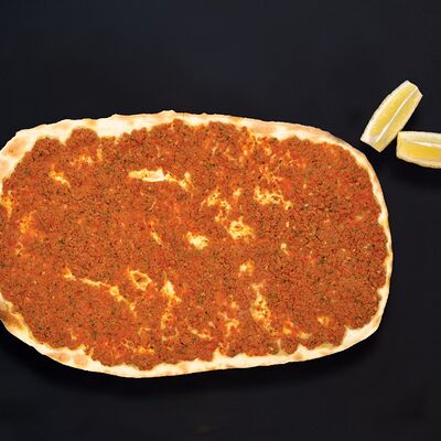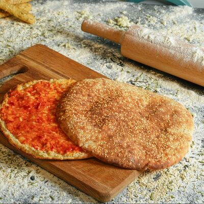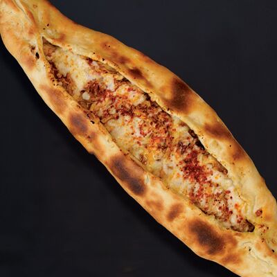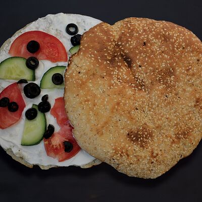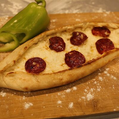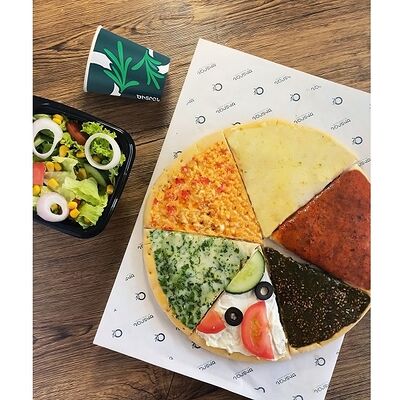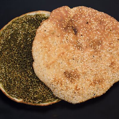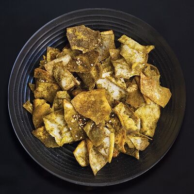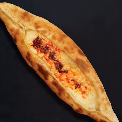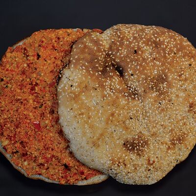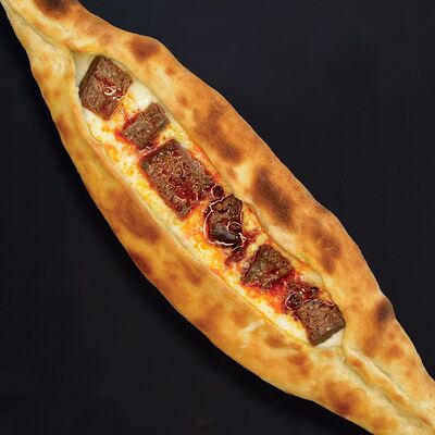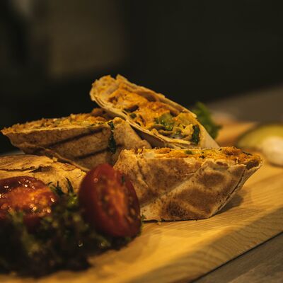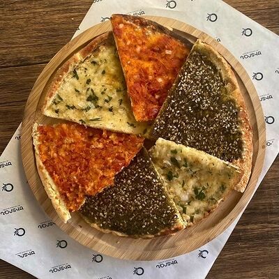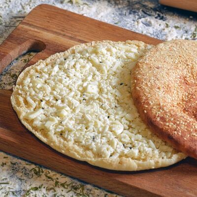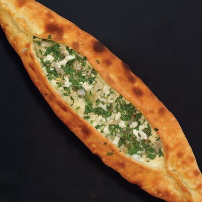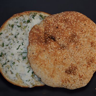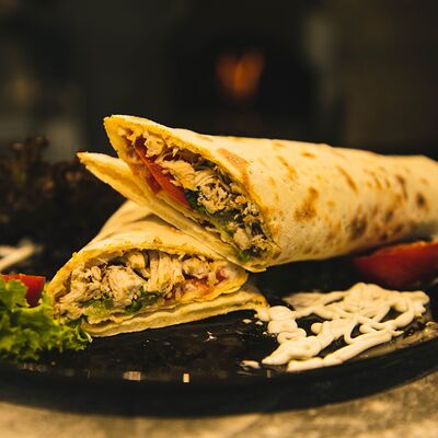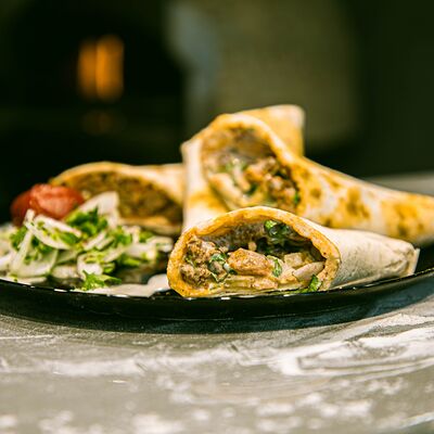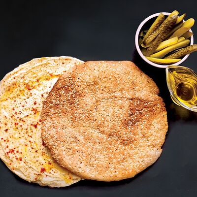 Ливанский лошик, маринованная курица, листья салата, соленые огурцы, чесночный соус
