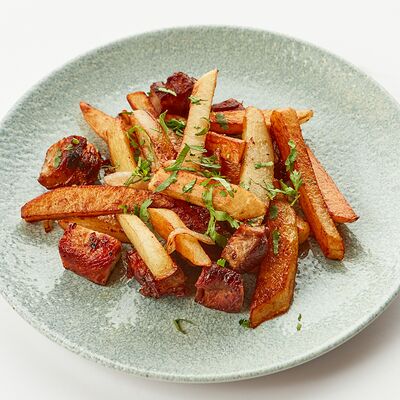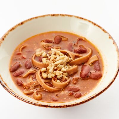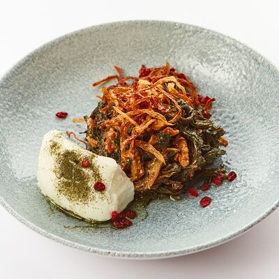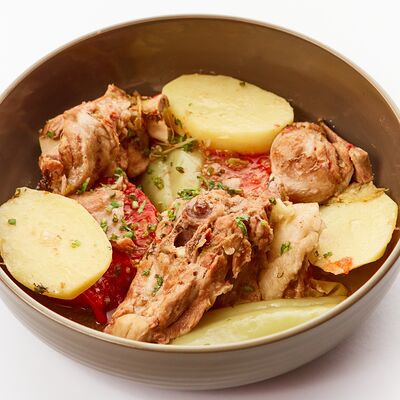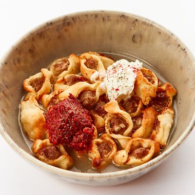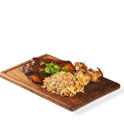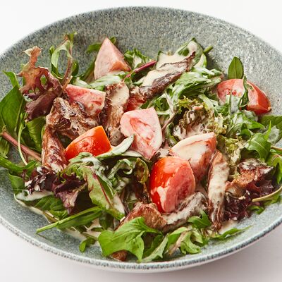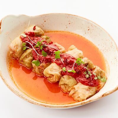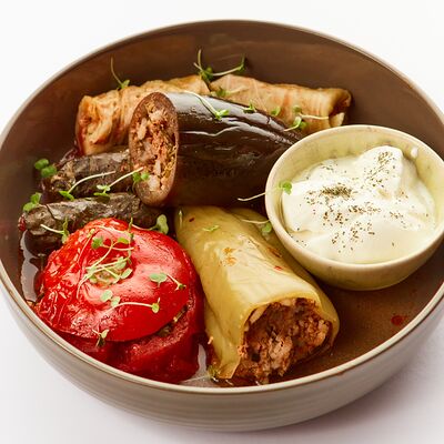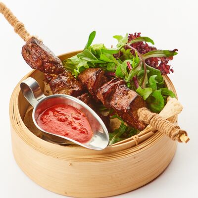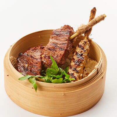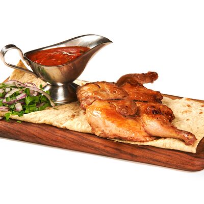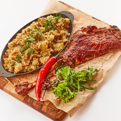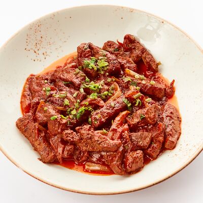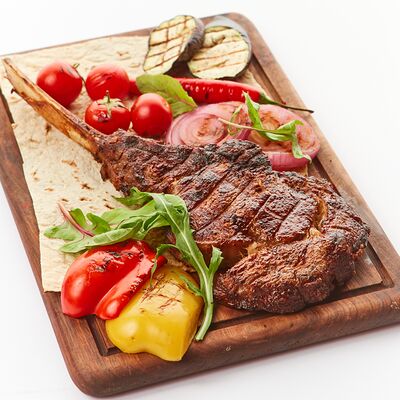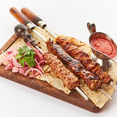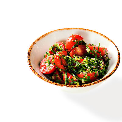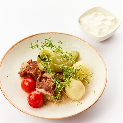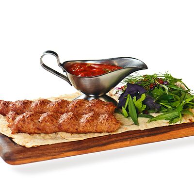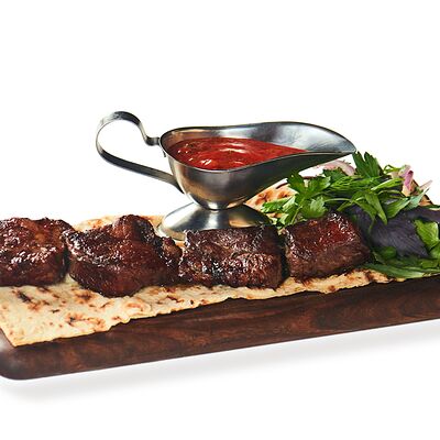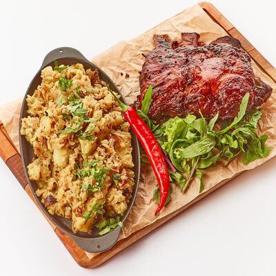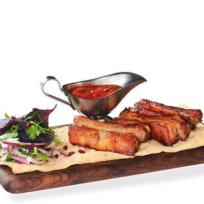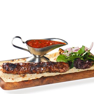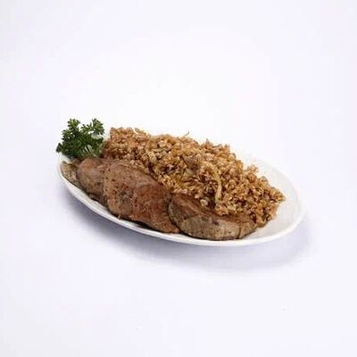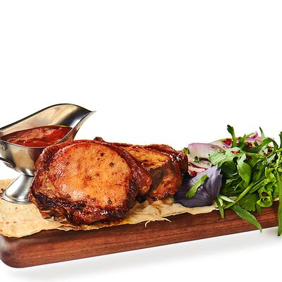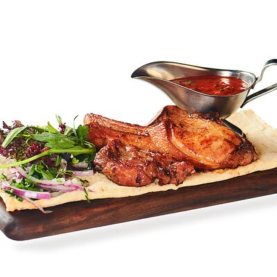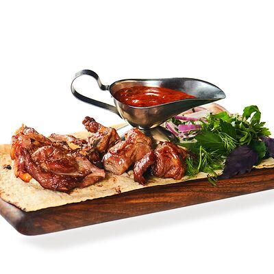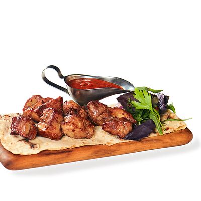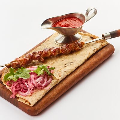 Свиная вырезка, зелень, лук, лаваш, томатная паста
