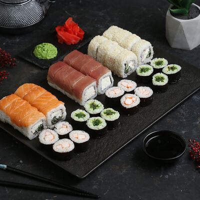 Королевская Филадельфия, классическая Филадельфия, Филадельфия с тунцом, Филадельфия с авокадо, Филадельфия лайт (40 шт.)