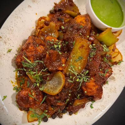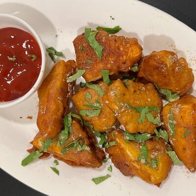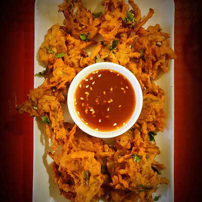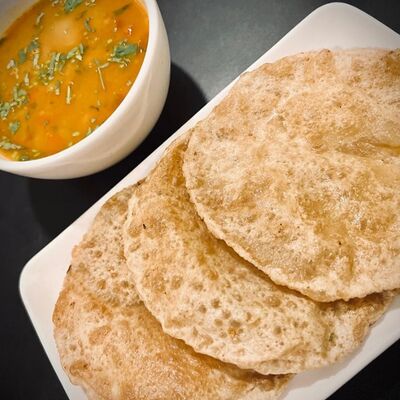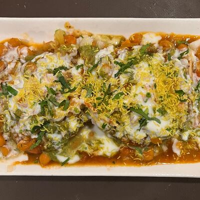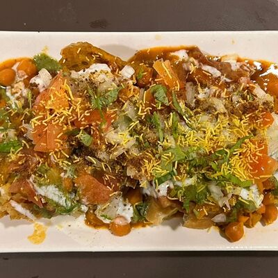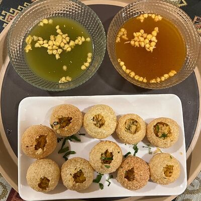 Хрустящий поджаренный воздушный шарик, наполненный картофелем, нутом, луком, специями и ароматизированной водой, обычно с тамариндом или мятой, и целиком отправляем в рот