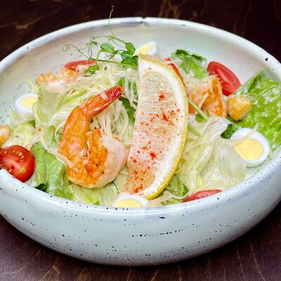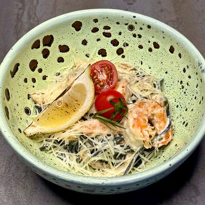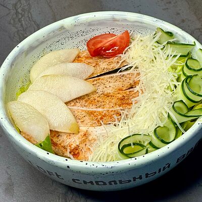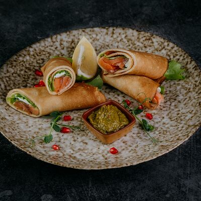 Семга, лист салата, огурец свежий, сыр творожный