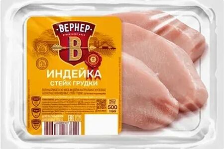 Стейк грудки ВЕРНЕР из мяса индейки охлажденный 500г доставка