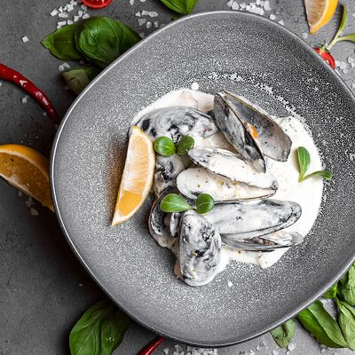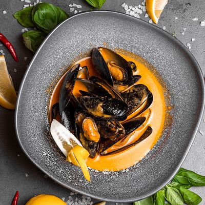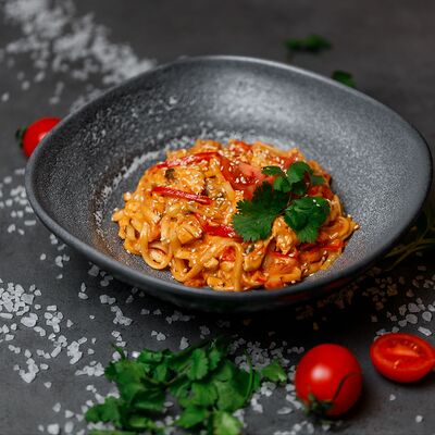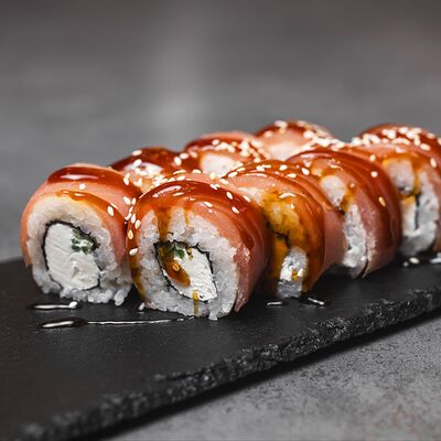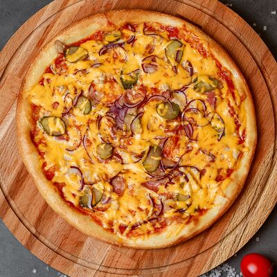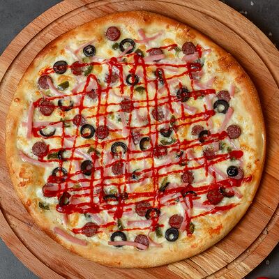 Красный соус, моцарелла, ветчина, грибы (30 см)
