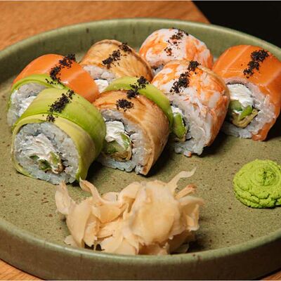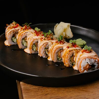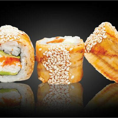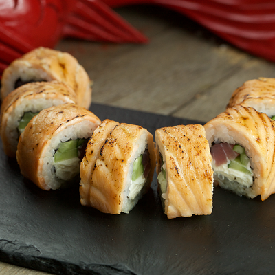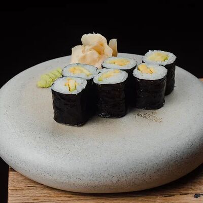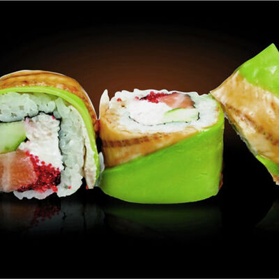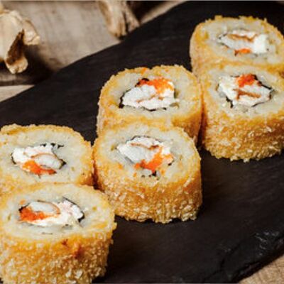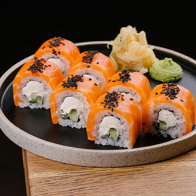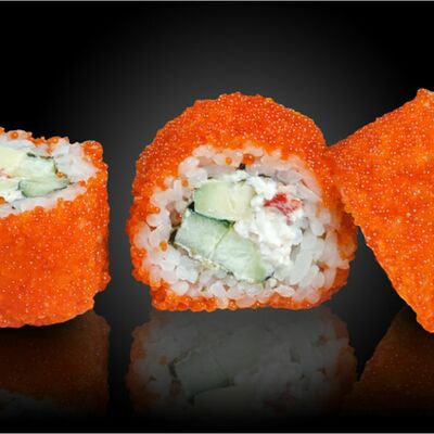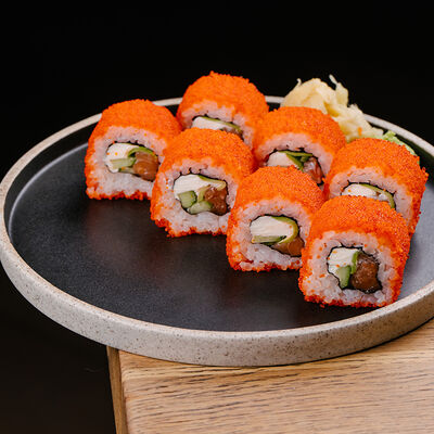 Ролл калифорния с авокадо, сыром Филадельфия, огурцом и снежным крабом