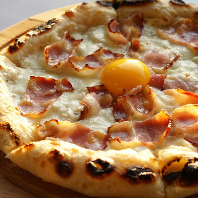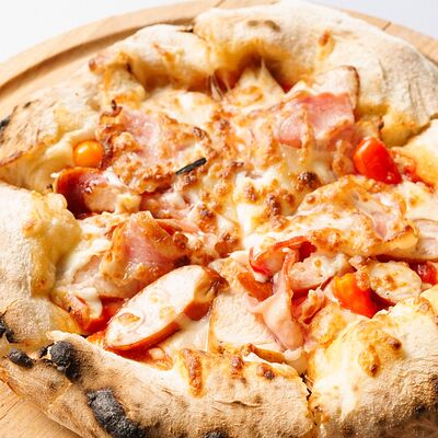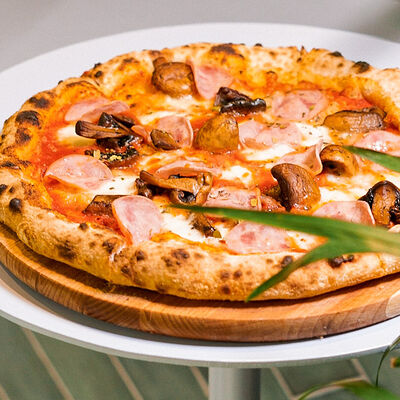 Неаполитанская пицца с ветчиной, грибами, моцареллой и итальянским соусом Mutti (28 см)