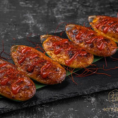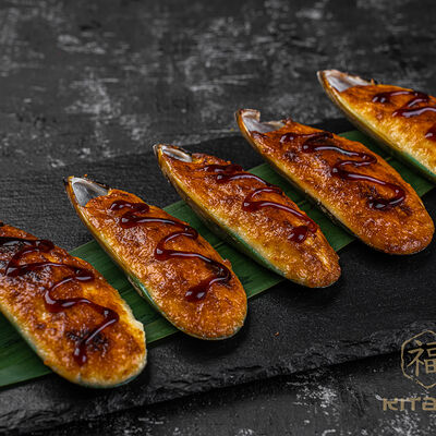 Мидии, соус пармезан, соус унаги
