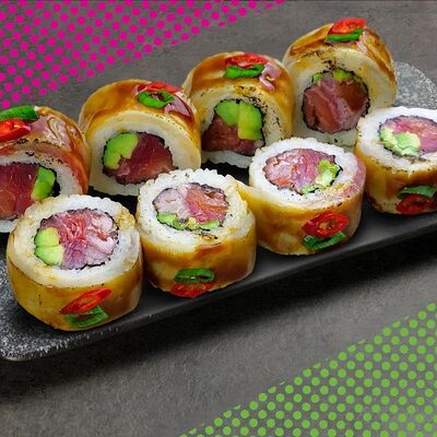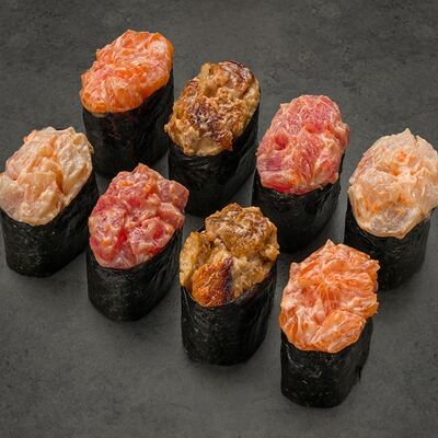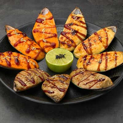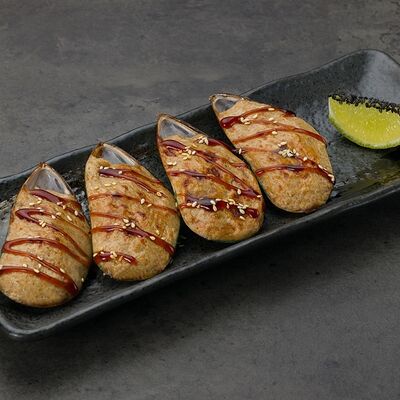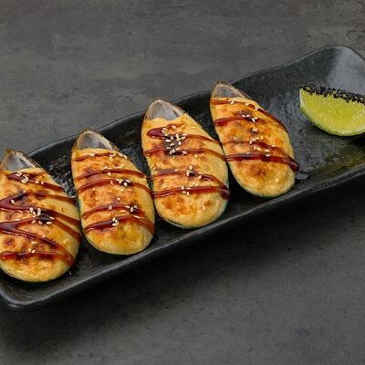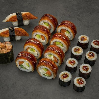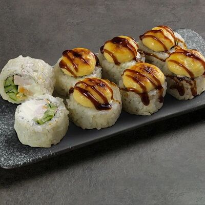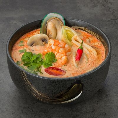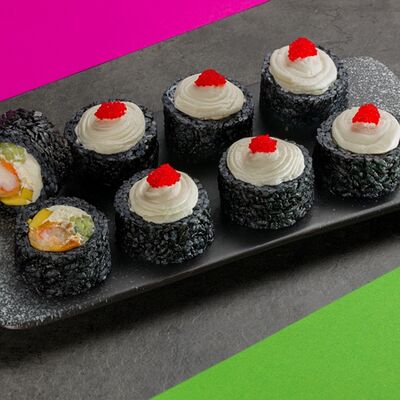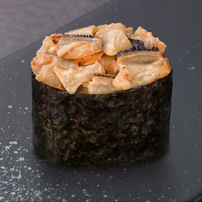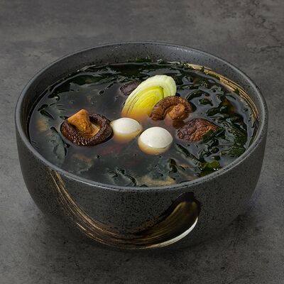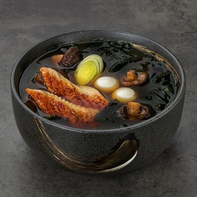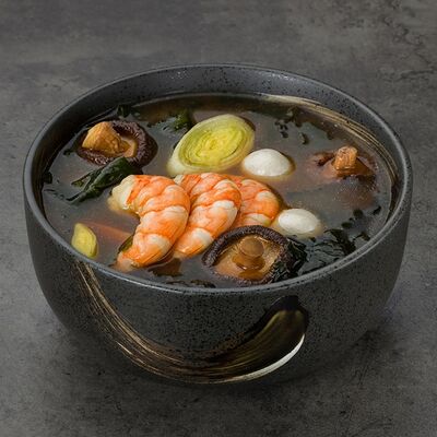Мисо паста, сливочный сыр, грибы шиитаке, лук-порей, вакамэ, ароматный угорь