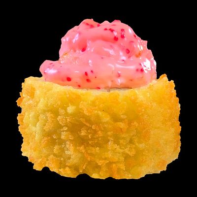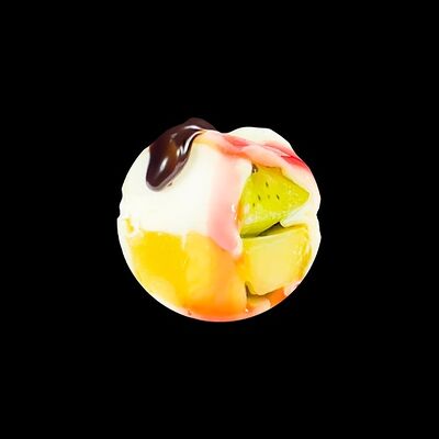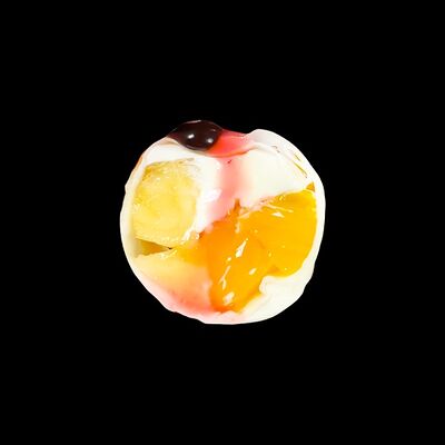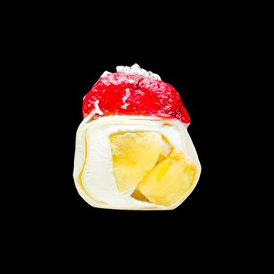 Ананас, киви, банан, тесто харумаки, сахарная пудра, сливочный сыр, топпинг клубничный, топпинг шоколадный, кляр, панировочные сухари