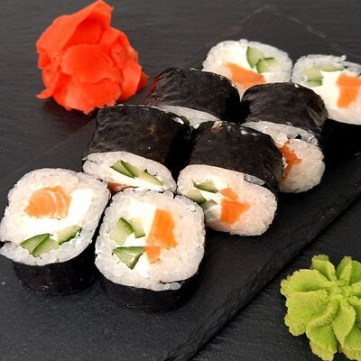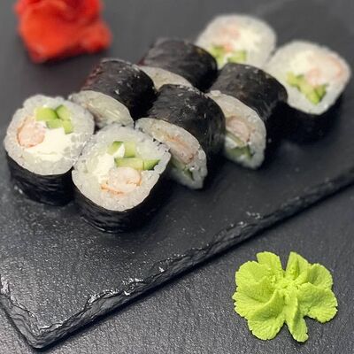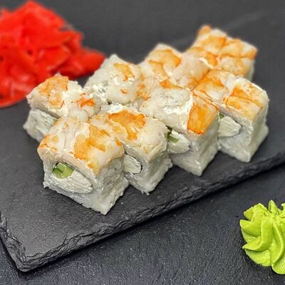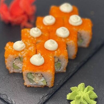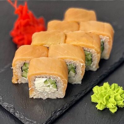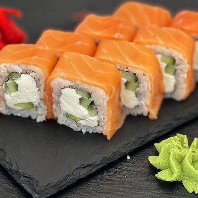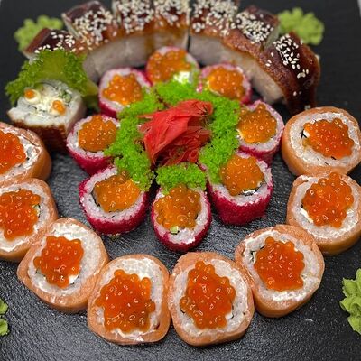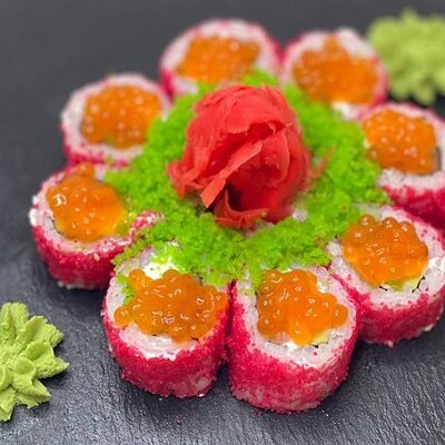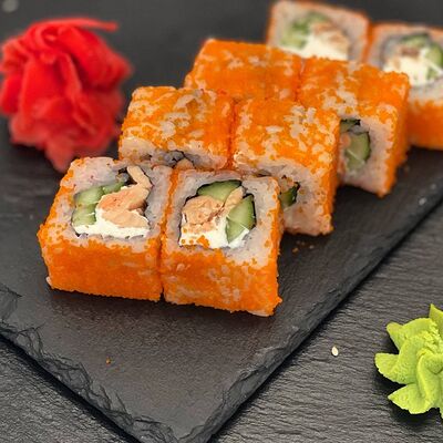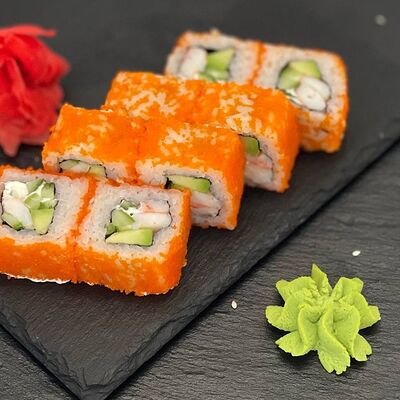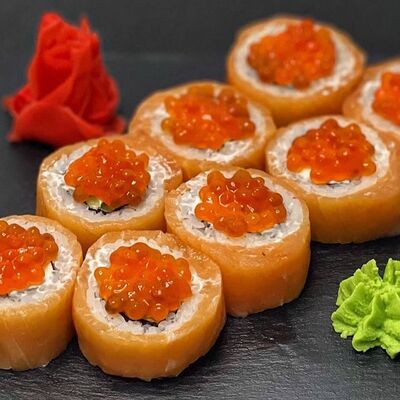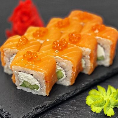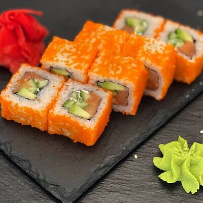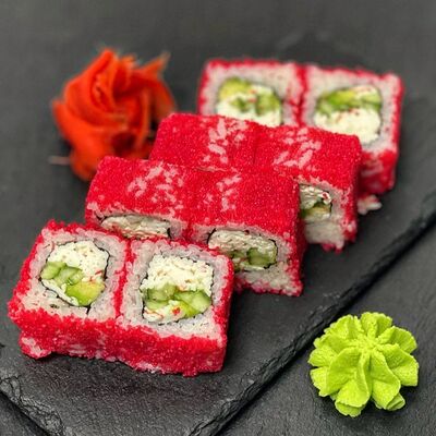 Рис, сыр, лосось, огурец, икра красная