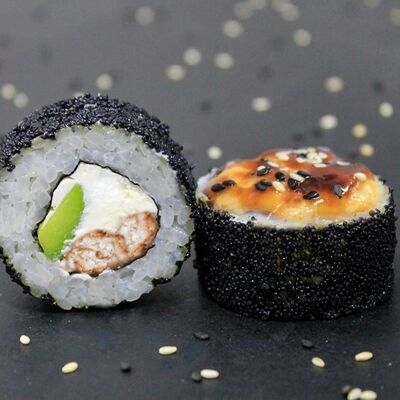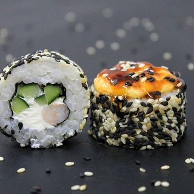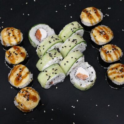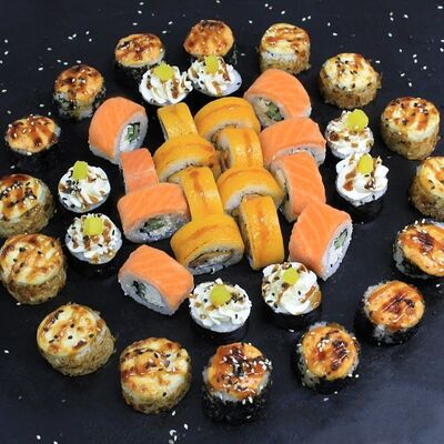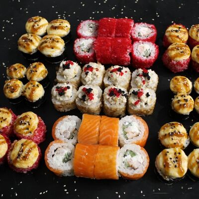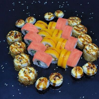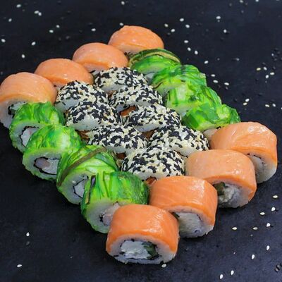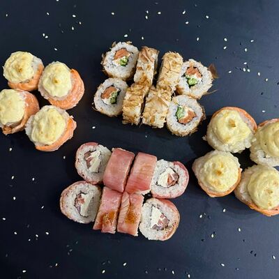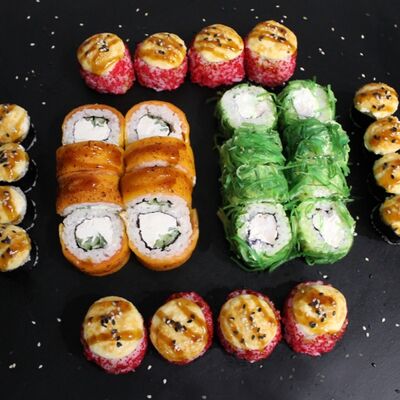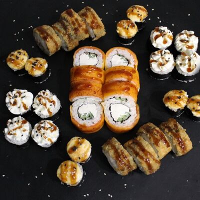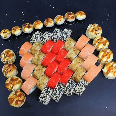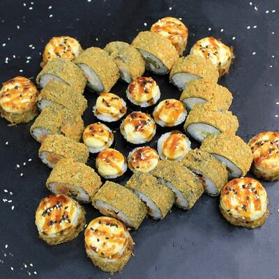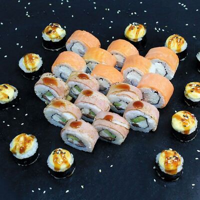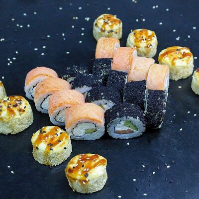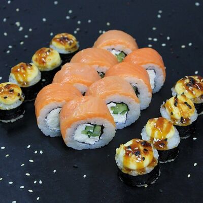 Сина, Бонито, Филадельфия запеченная (24 шт.), соевый соус, васаби, имбирь
