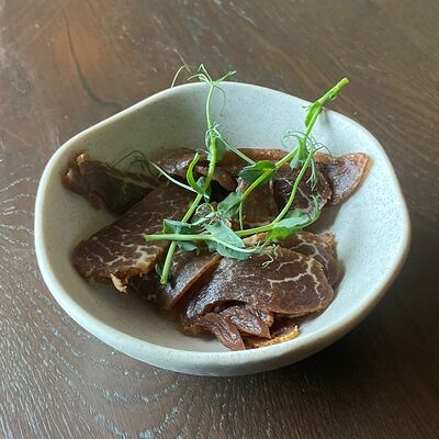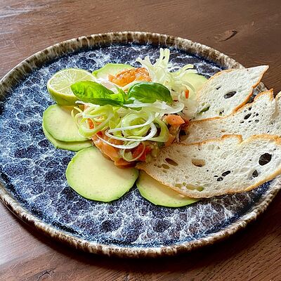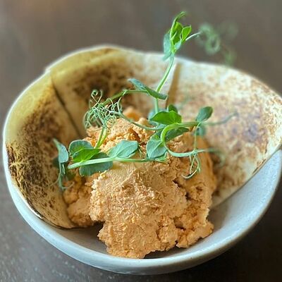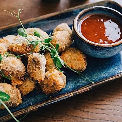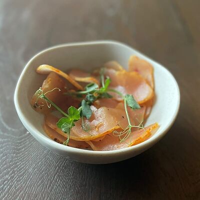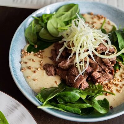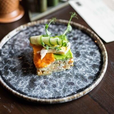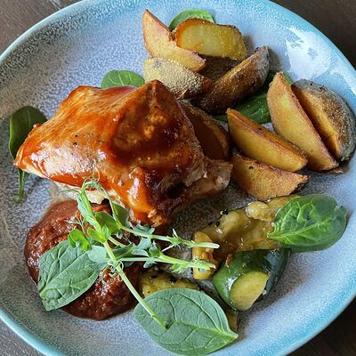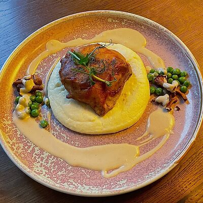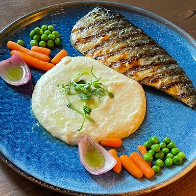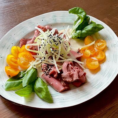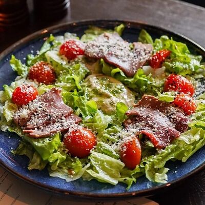 Свежий горошек, копчёное филе цыплёнка, домашний майонез на копчёном масле